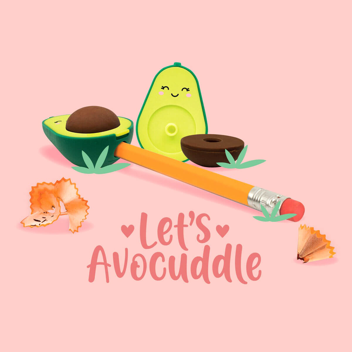 Avocado pencil sharpener with eraser by Legami. Avocado shaped pencil sharpener with an eraser stone. With a container that can be emptied. Erases gently and cleanly.