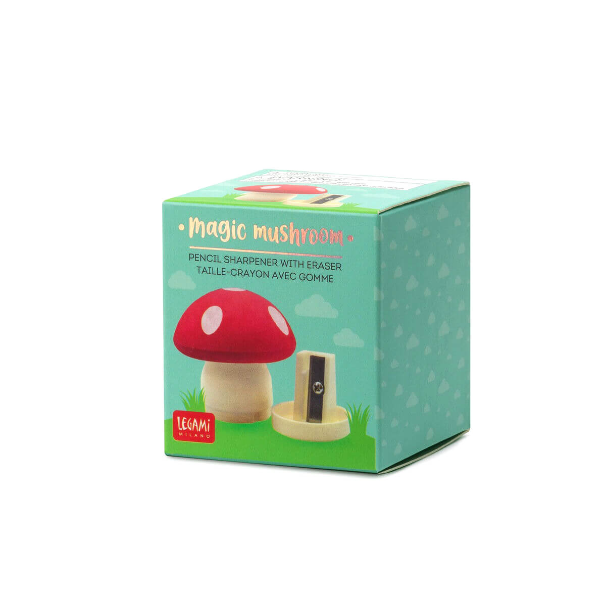 Magic Mushroom eraser and pencil sharpener by Legami. Have fun with this decorative eraser and pencil sharpener shaped like a toadstool.