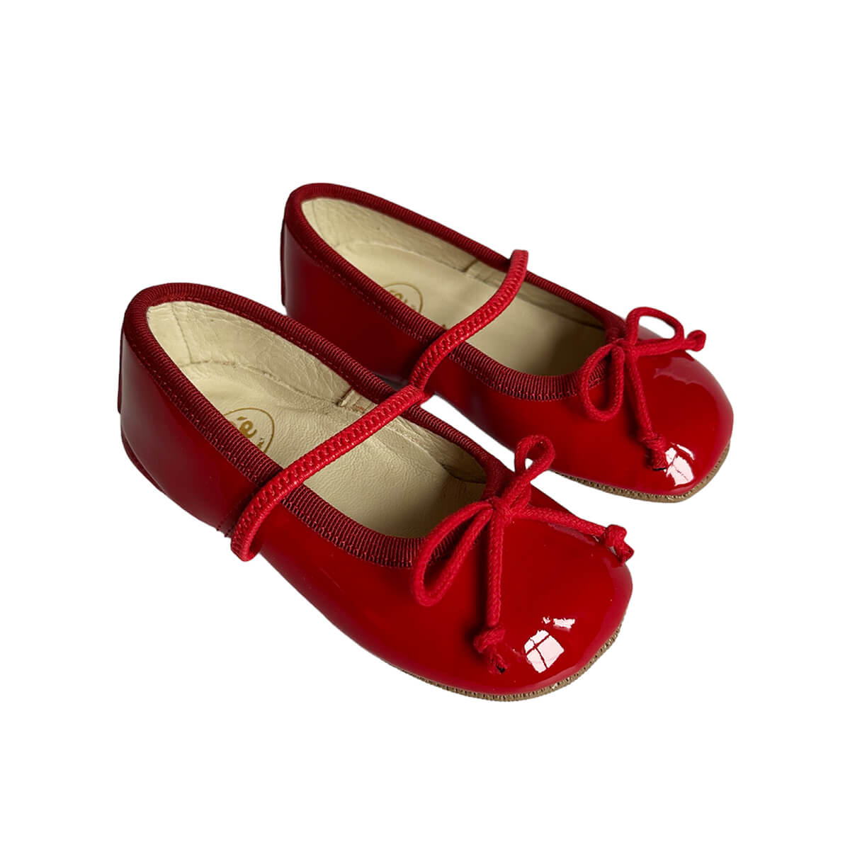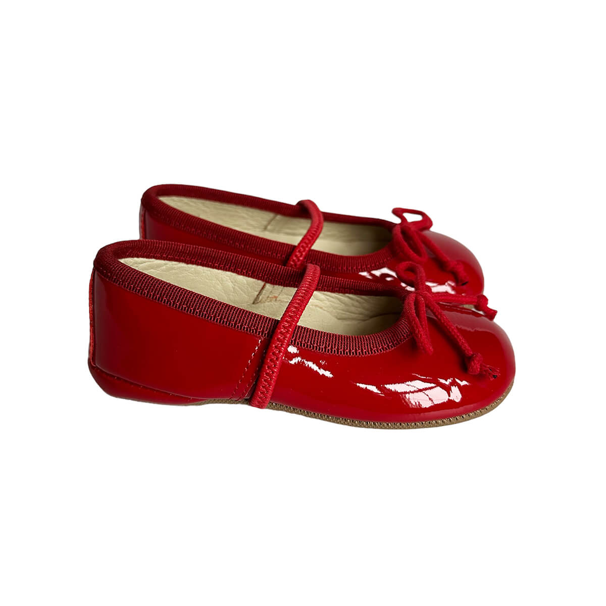 Darlyn patent leather ballet slippers by PèPè shoes. Shiny patent leather ballet slippers with a leather lining and rubber sole. Elastic strap. Handmade using traditional methods in Italy.