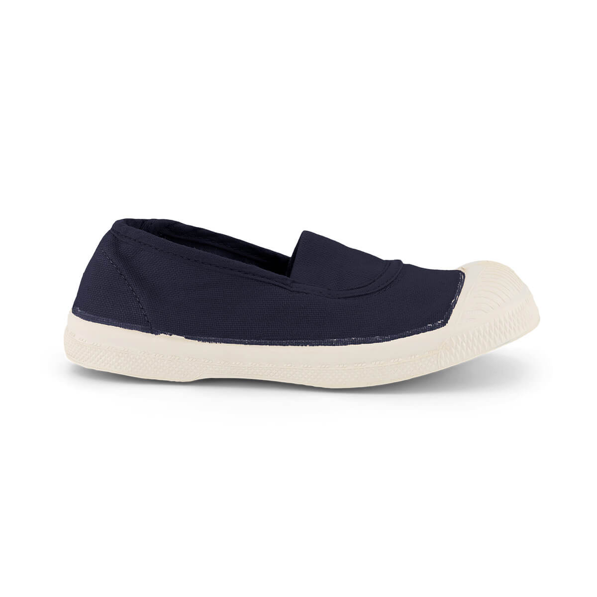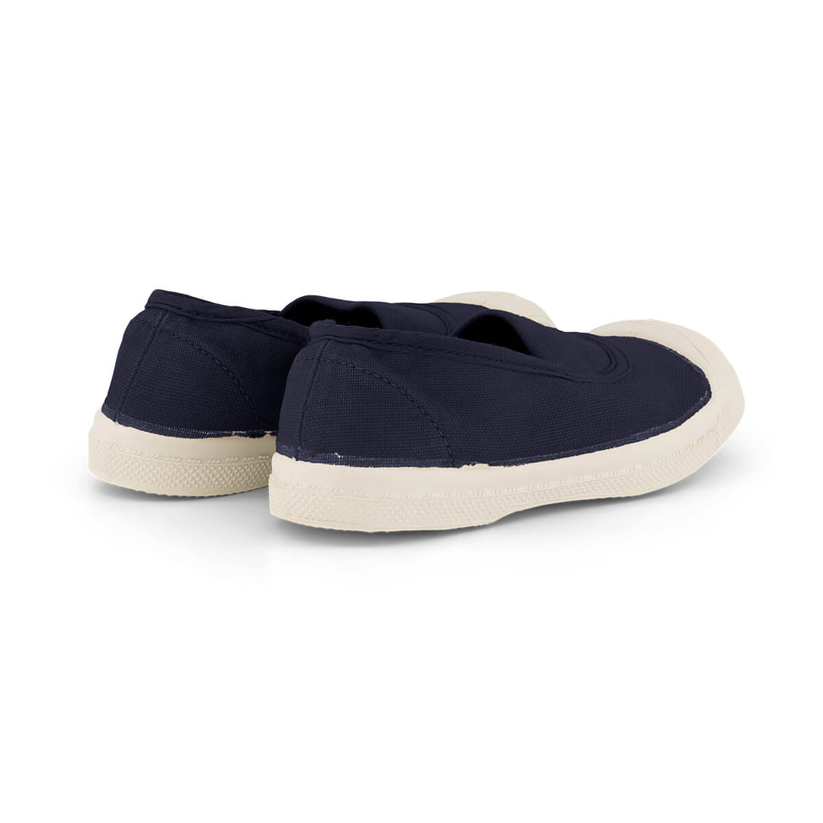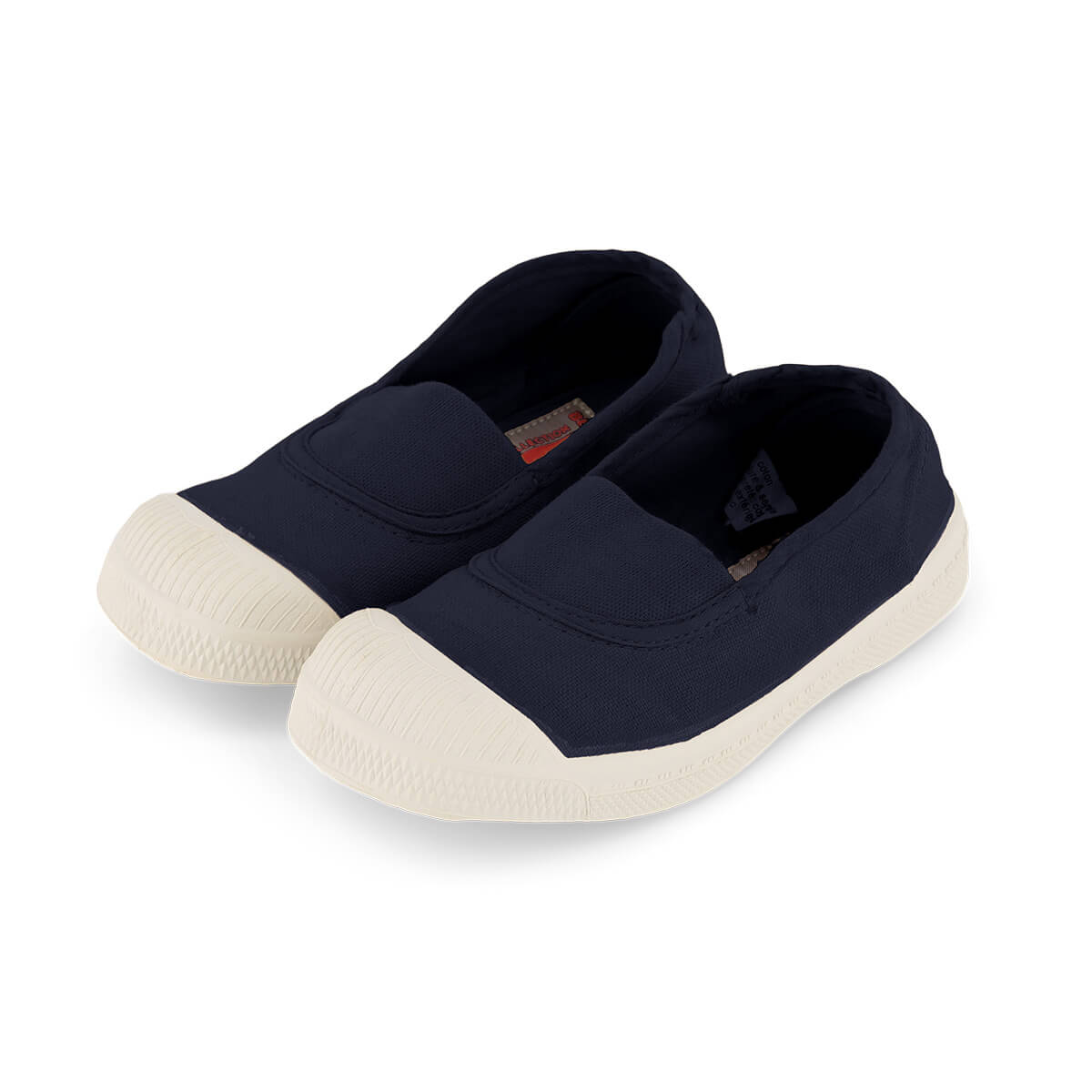 Elastic tennis shoe by Bensimon. Simple slip-on elasticated front version of the Bensimon tennis plimsolls. This slip-on style is easy to put on and quick to take off. Thin and lightweight sneakers made from rubber and natural cotton. Every shoe is hand-dyed in Bensimon's workshops in France, meaning every pair has its own variations and is completely unique.