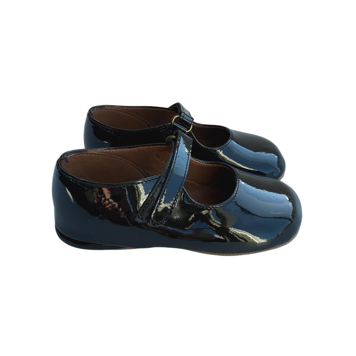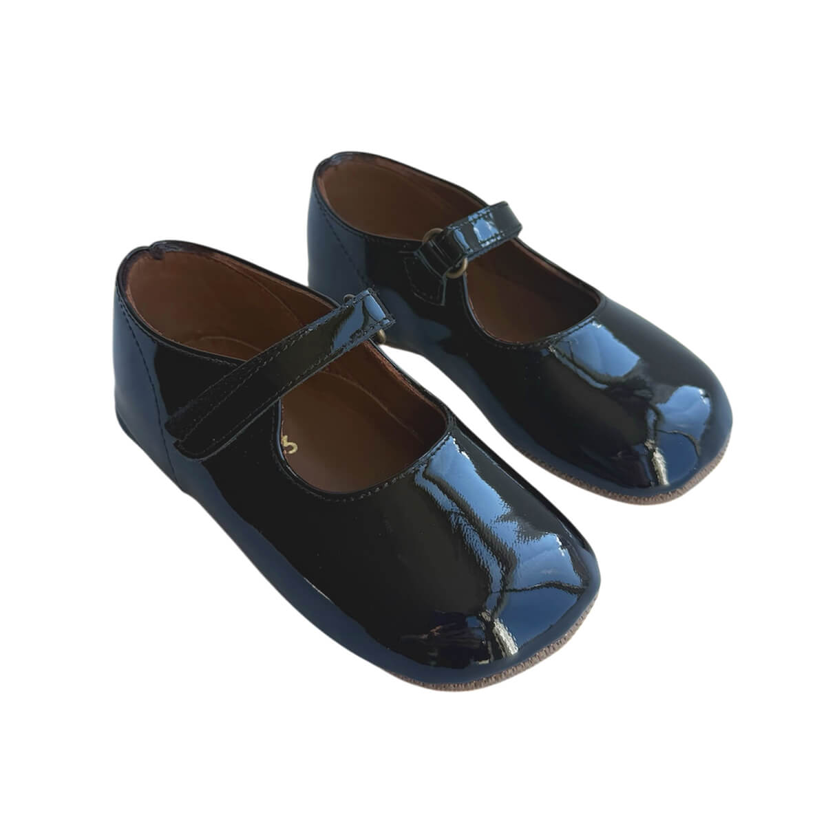 Ginevra patent leather ballet slippers by PèPè shoes. Shiny patent leather velcro strap slippers with a leather lining and rubber sole. The velcro strap is fully adjustable for a perfect fit. Handmade using traditional methods in Italy.