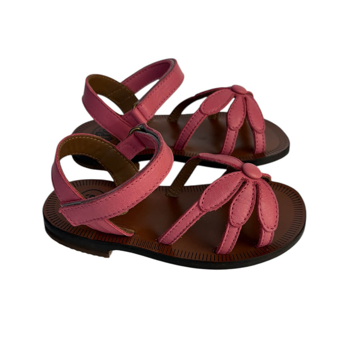 Giulia Flower sandals by PèPè shoes. Flower front sandals in a blush pink vitello calfskin leather with adjustable velcro ankle strap fastening. Soft and flexible leather sole. Lined with 100% leather. Handmade using traditional methods in Italy.