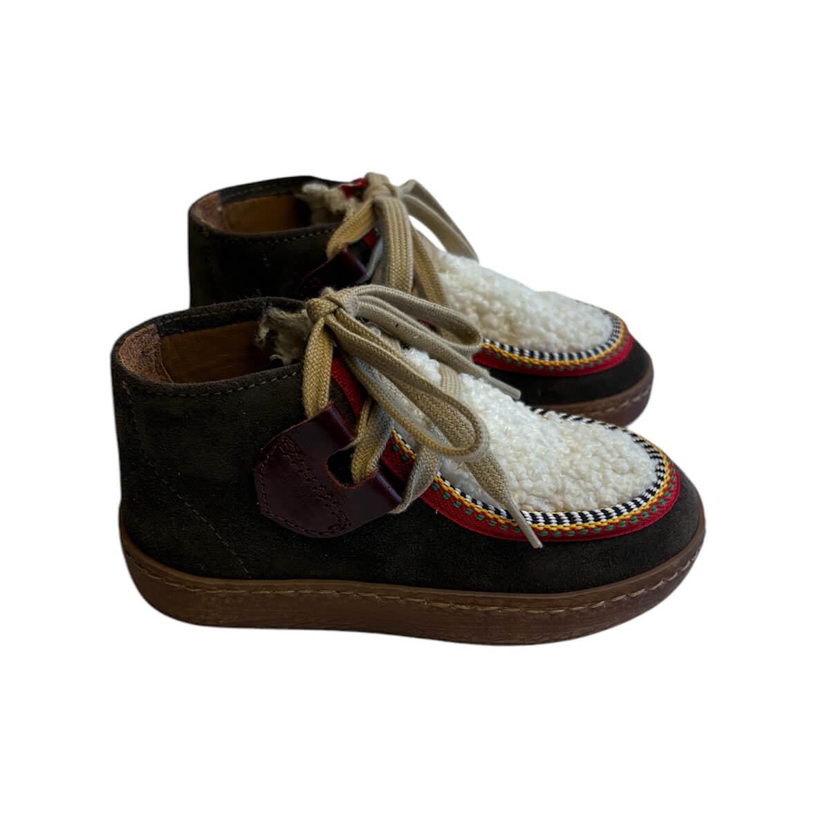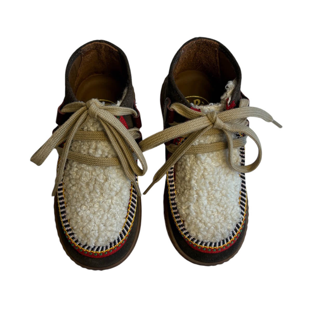 Mocassin Lace Up Shoes in Brown Suede / Shearling by PèPè
