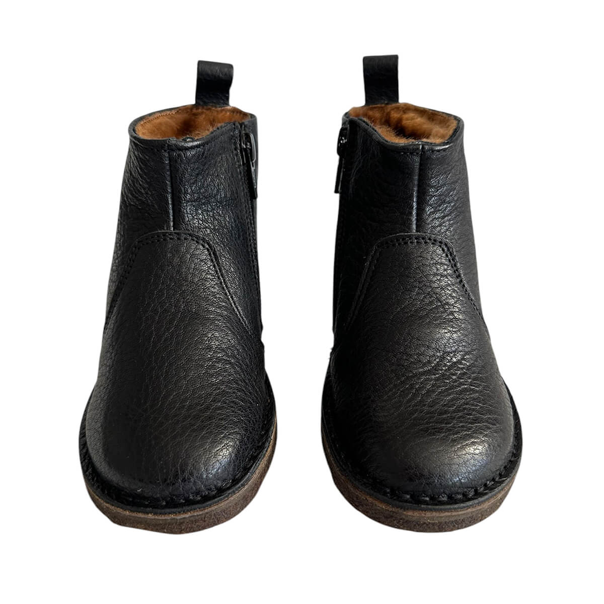 Tate sheepskin lined ankle boots by PèPè shoes. Soft leather zip up ankle boots with a brown sheepskin lining and crepe sole. Features a side zip for easy on/off. Handmade using traditional methods in Italy.