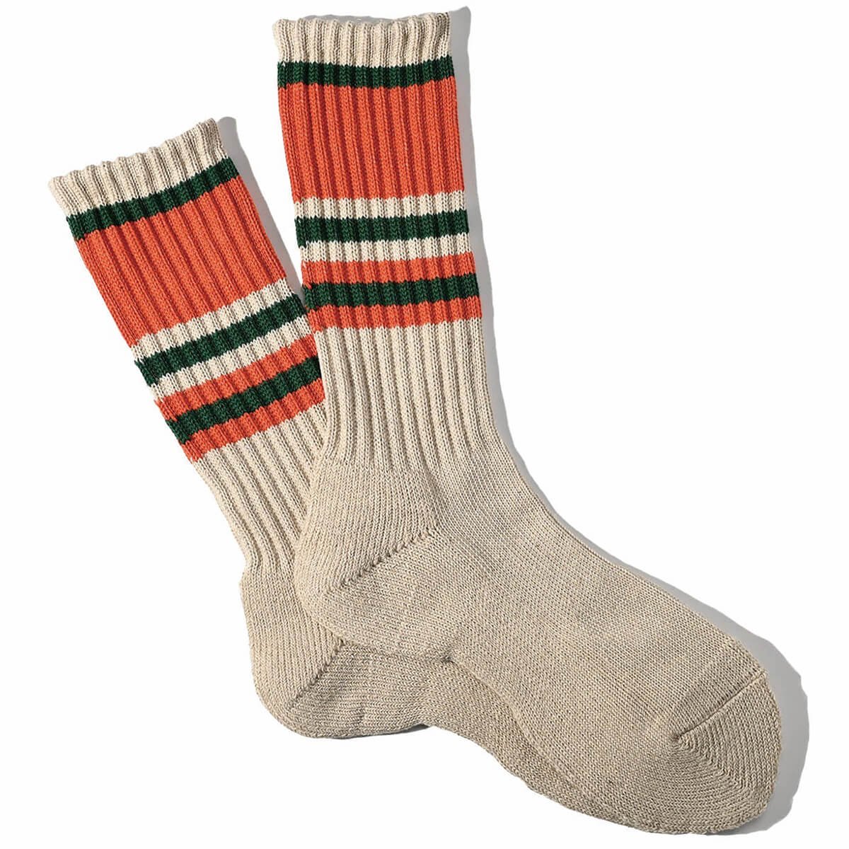 Hemp Random Stripe Pile Crew Adult Socks in Orange by Anonymous Ism