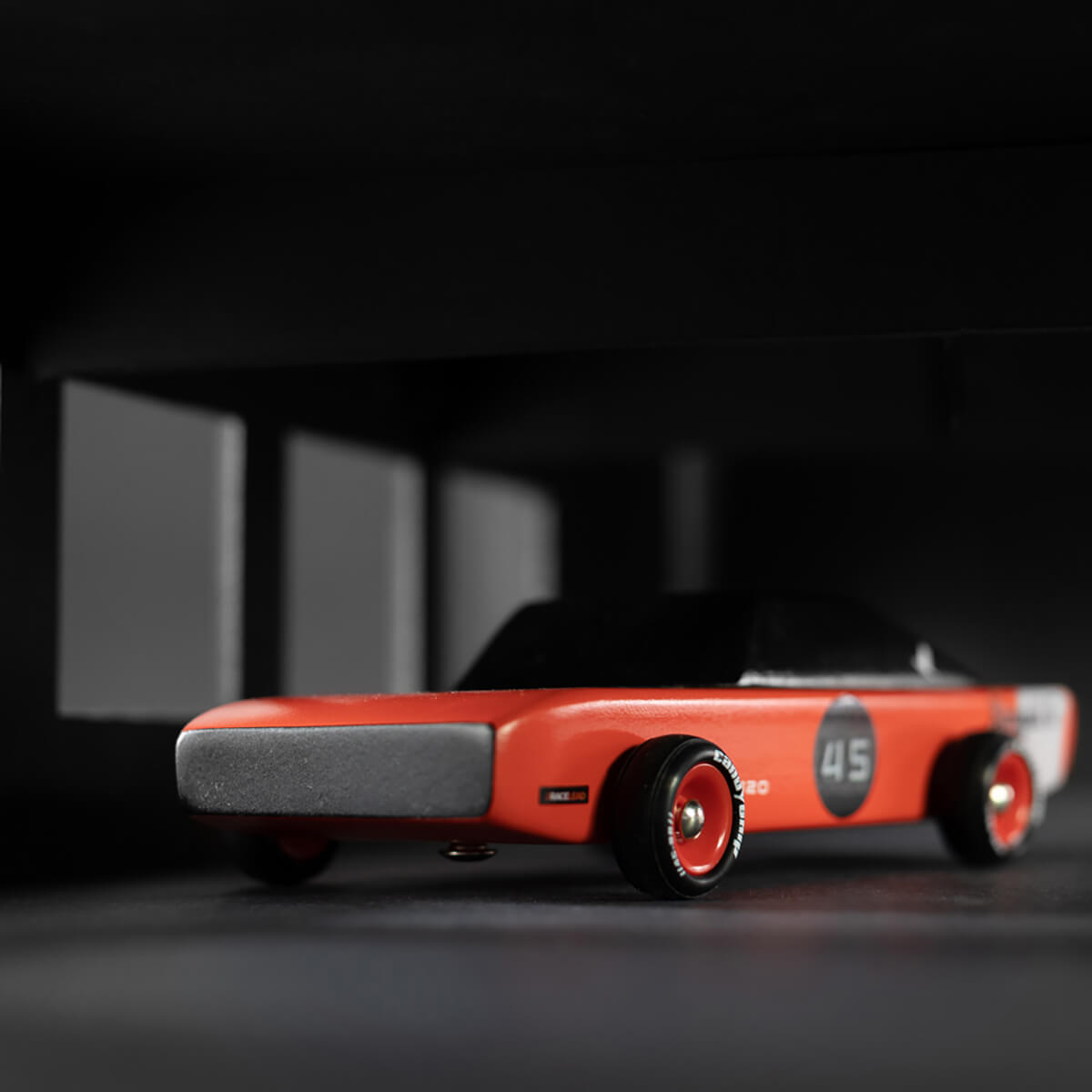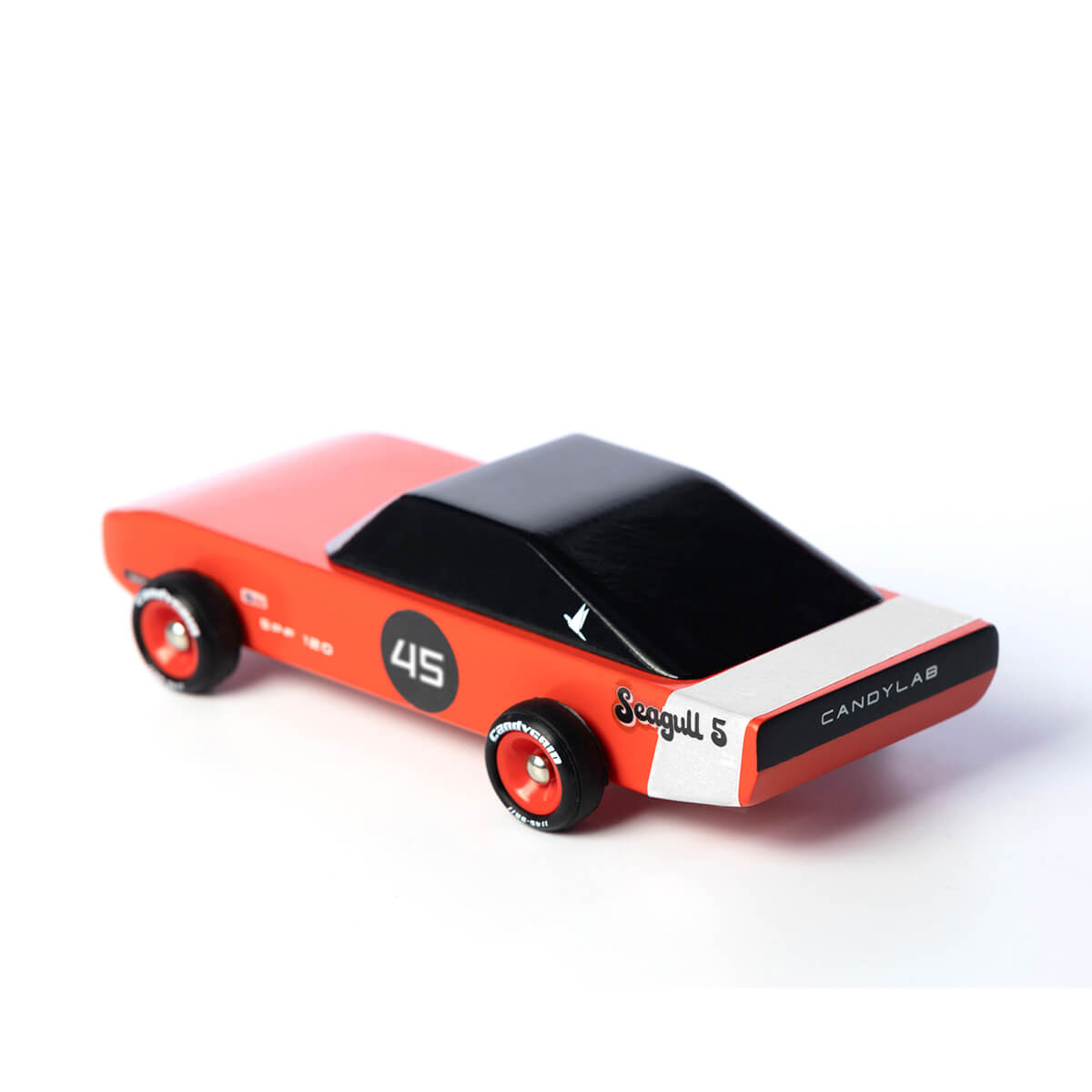Seagull Blue racing car by Candylab Toys. Taking inspiration from the huge superchargers, bold colors and playful graphics that defined 1970s racing, the Seagull 5 is a powerful machine that will give you all it's got, on or off the track.