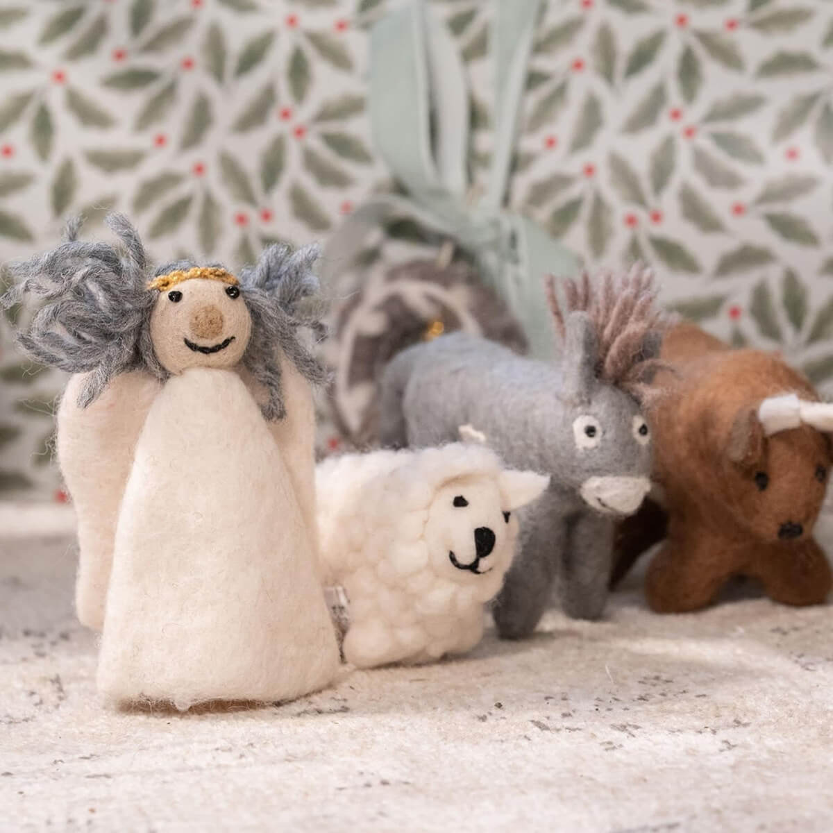 Nativity angel by Gry & Sif. A beautiful handmade Nativity angel in a Scandinavian style for you to add to your own festive Nativity scene. Handmade and truly unique. Other Nativity items to complete your Christmas scene are sold separately.
