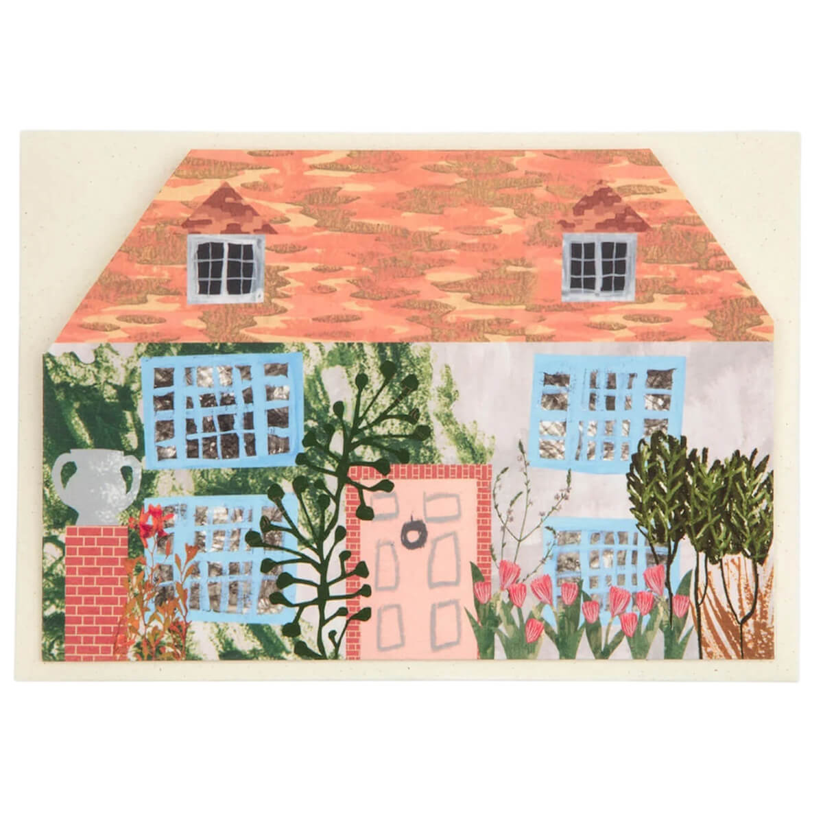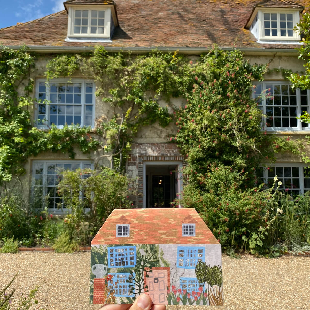 Charleston Greetings Card by Hadley. This card is a unique depiction of the iconic Charleston, home of the Bloomsbury group - some of the most radical artists, writers and thinkers of the 20th Century (think Virginia Wolf, Vanessa Bell, Roger Fry). This house-shaped design incorporates all the luscious textures and bold colours you would experience through a visit to the house and gardens and it really is a thing of beauty for your mantelpiece!