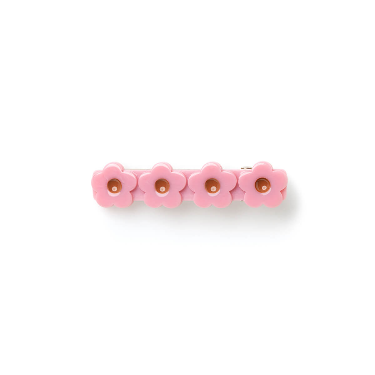Flower Hair Clip by Wunderkin Co. Four flower bar hair clip. Handmade in France, this flower clip is made from plant-based eco-friendly cellulose acetate set onto a silver tone crocodile clip. Perfect for holding back stray hairs and fringes. Wear individually or combine two or three clips at the same time.