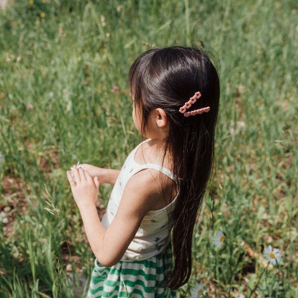Wunderkin Co hair clips and barrettes are made in partnership with a 100-year old, family-owned factory in the French mountainside. They are made from cellulose-acetate, which is an organic compound made from cotton and tree bark.