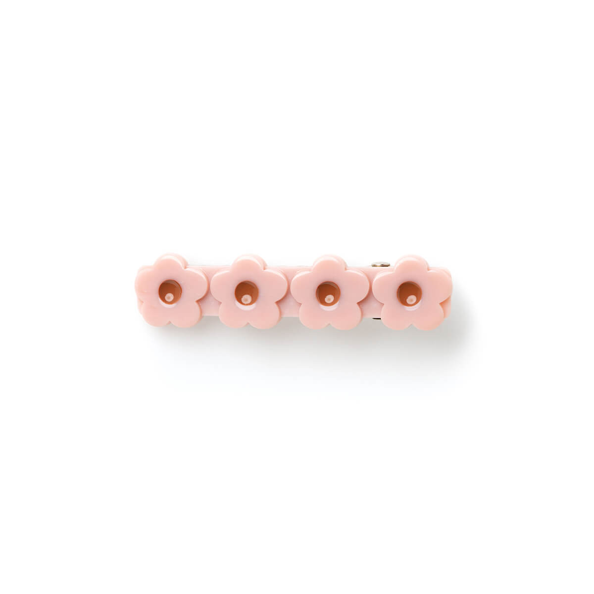 Flower Hair Clip by Wunderkin Co. Four flower bar hair clip. Handmade in France, this flower clip is made from plant-based eco-friendly cellulose acetate set onto a silver tone crocodile clip. Perfect for holding back stray hairs and fringes. Wear individually or combine two or three clips at the same time.