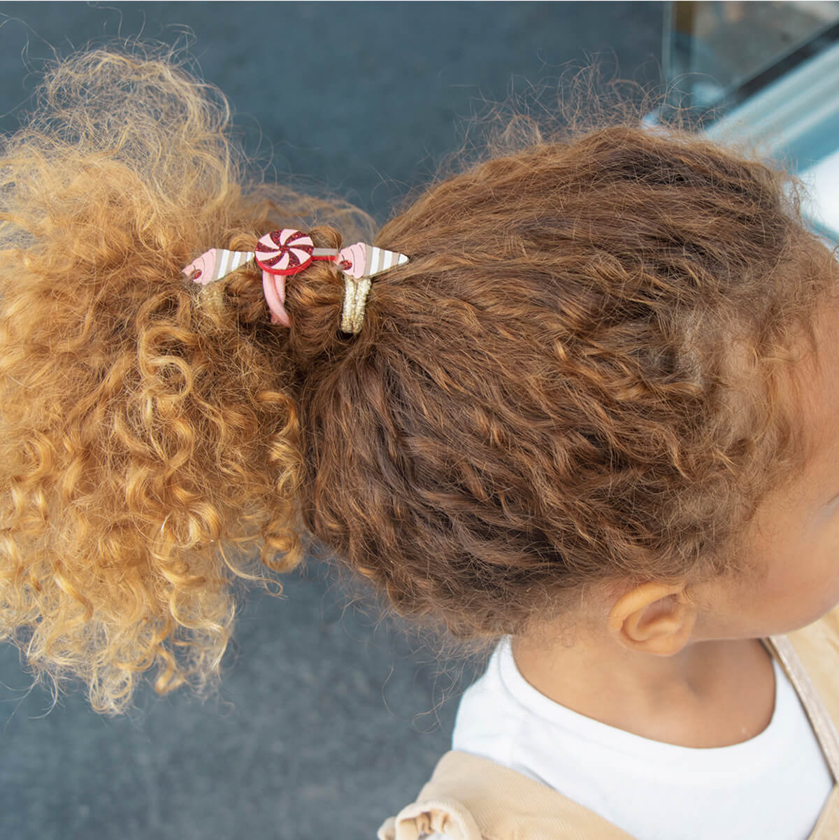 Very Cherry Ice Cream ponies by Rockahula Kids. Help yourself to a scoop of delicious Very Cherry Ice Cream Ponies this summer! Two cherry topped swirled ice cream cones sit upon two gold elastics, whilst two glitter swirled lollies sit upon two pink elastics.