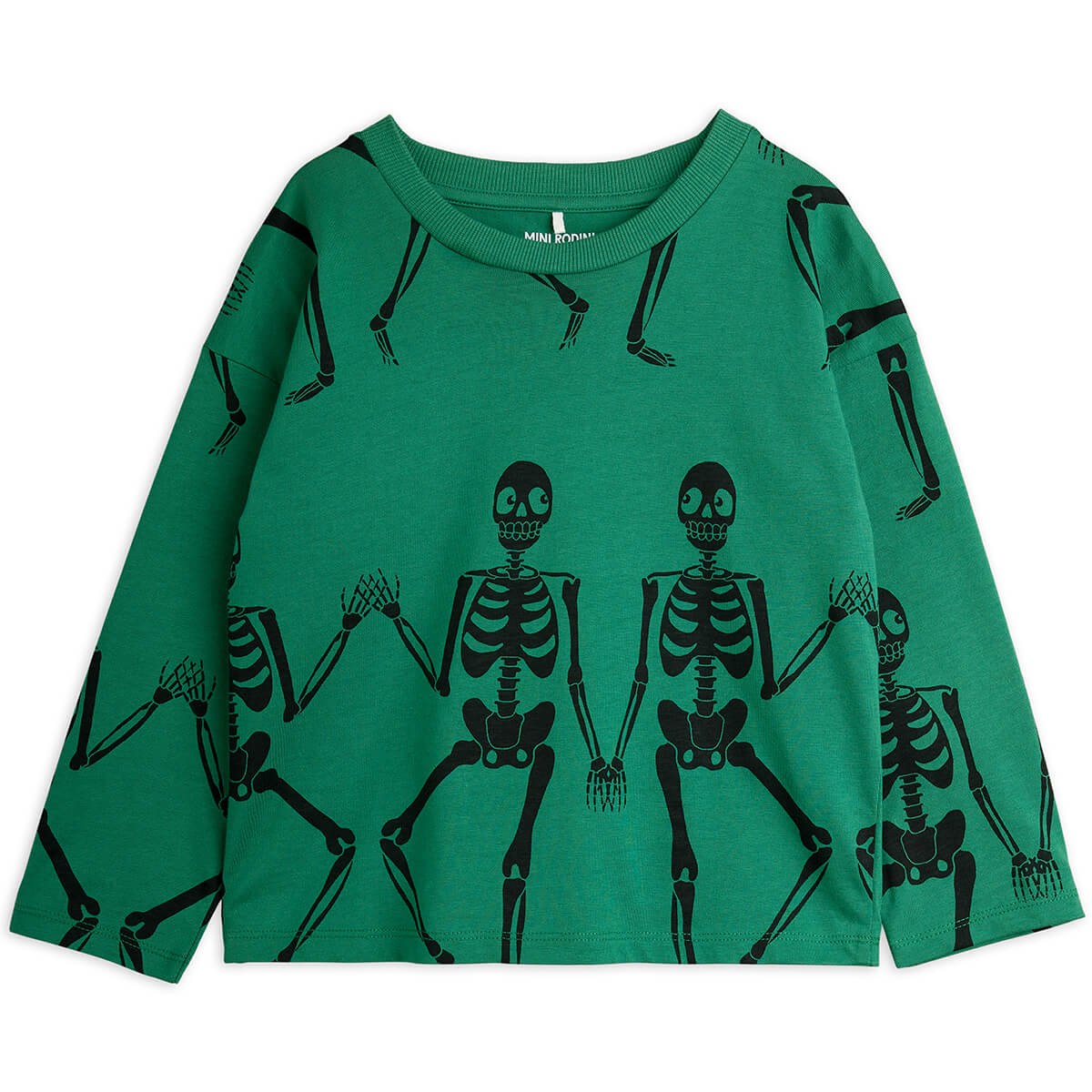 Skeleton Long Sleeve Tee in Green by Mini Rodini