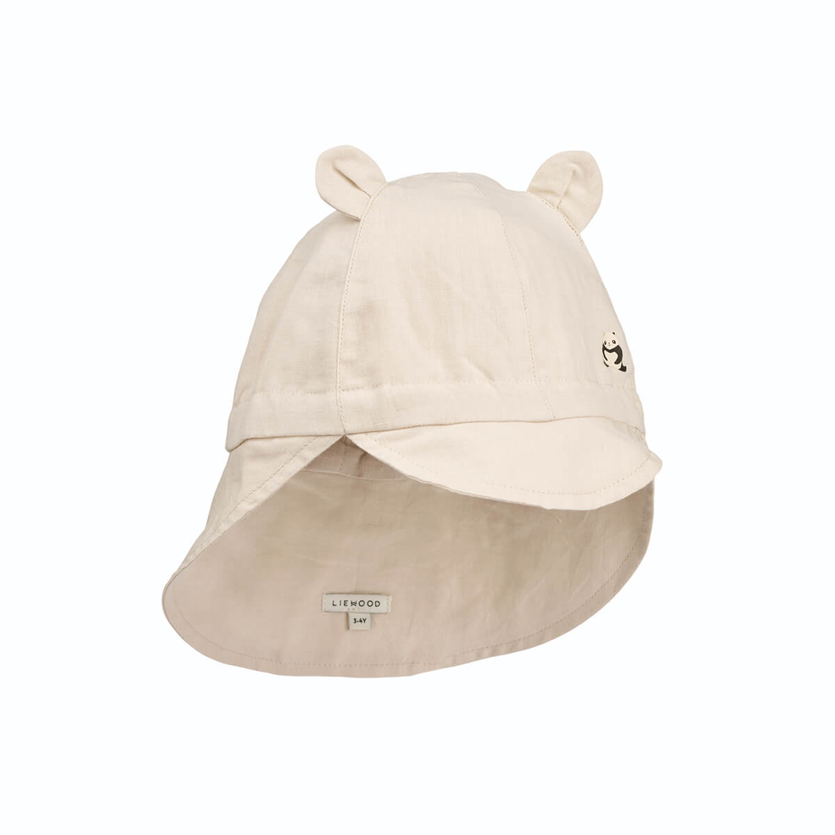 Gorm Linen Sun Hat by Liewood. Breathable linen sun hat with playful animal ears. Made from a lightweight blend of linen and organic cotton. Features a soft, bendable brim and drawstrings in the back for a secure fit. The longer neck flap ensures extra sun protection.