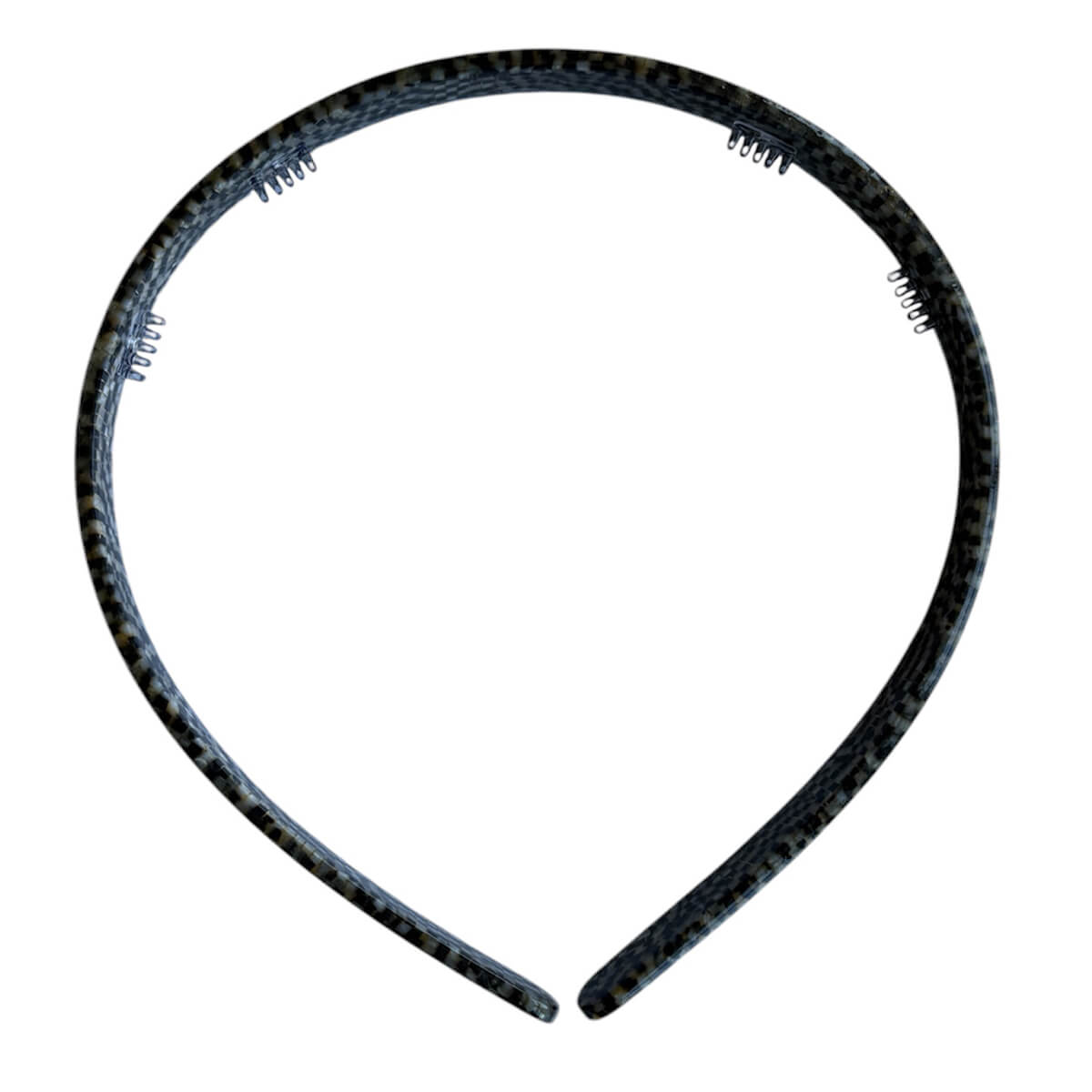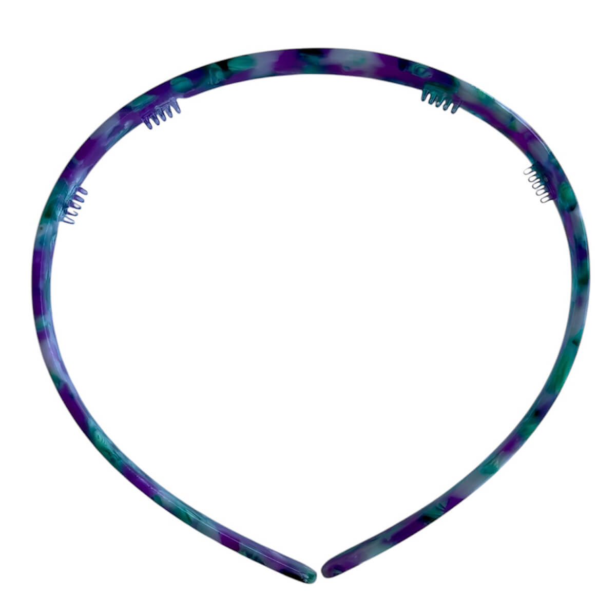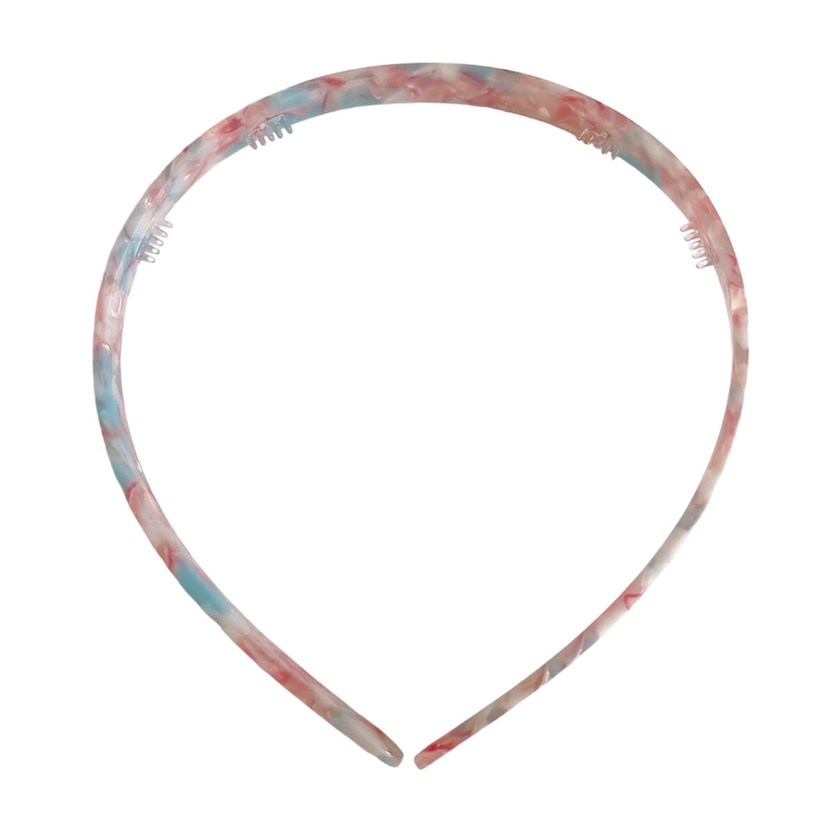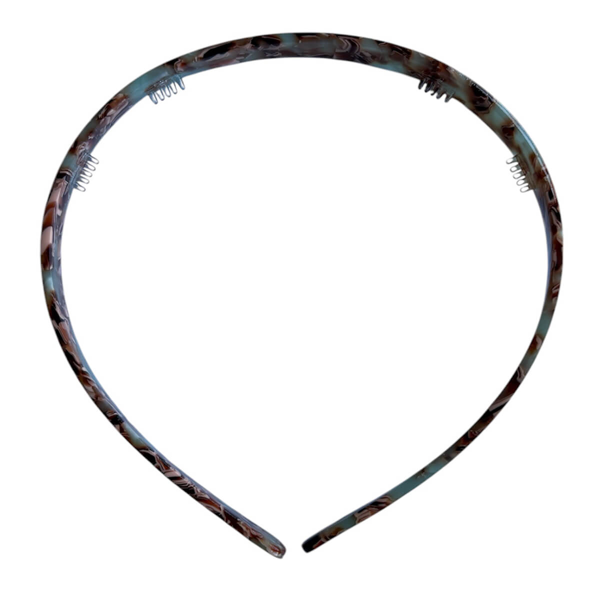 Acetate Alice band by Hello Sakura. Keep hair off the face with this pretty full acetate Alice band. Suitable for most head sizes as it is fully flexible. Comfortable to wear with rounded ends and mini combs to hold it in place. Made from plant-based eco-friendly cellulose acetate.