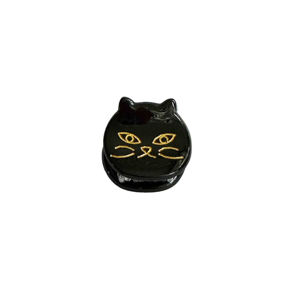 Kitty round mini hair claw by Hello Sakura. Full acetate pretty little cat hair claws with gold details. Made from plant-based eco-friendly cellulose acetate.