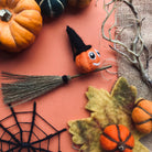 Flying Pumpkin felted Halloween hanging decoration by Felt So Good. This jolly little chap takes to the skies every October 31st, if you look hard enough you may see him zoom past your house! This smiley pumpkin simply loves the spooky season!