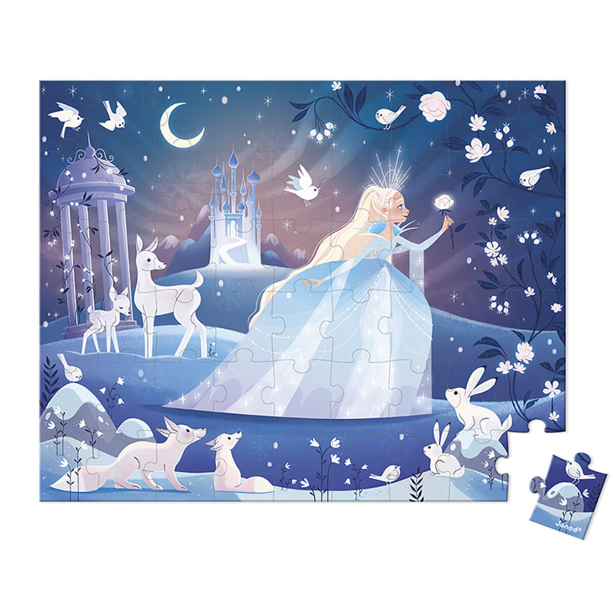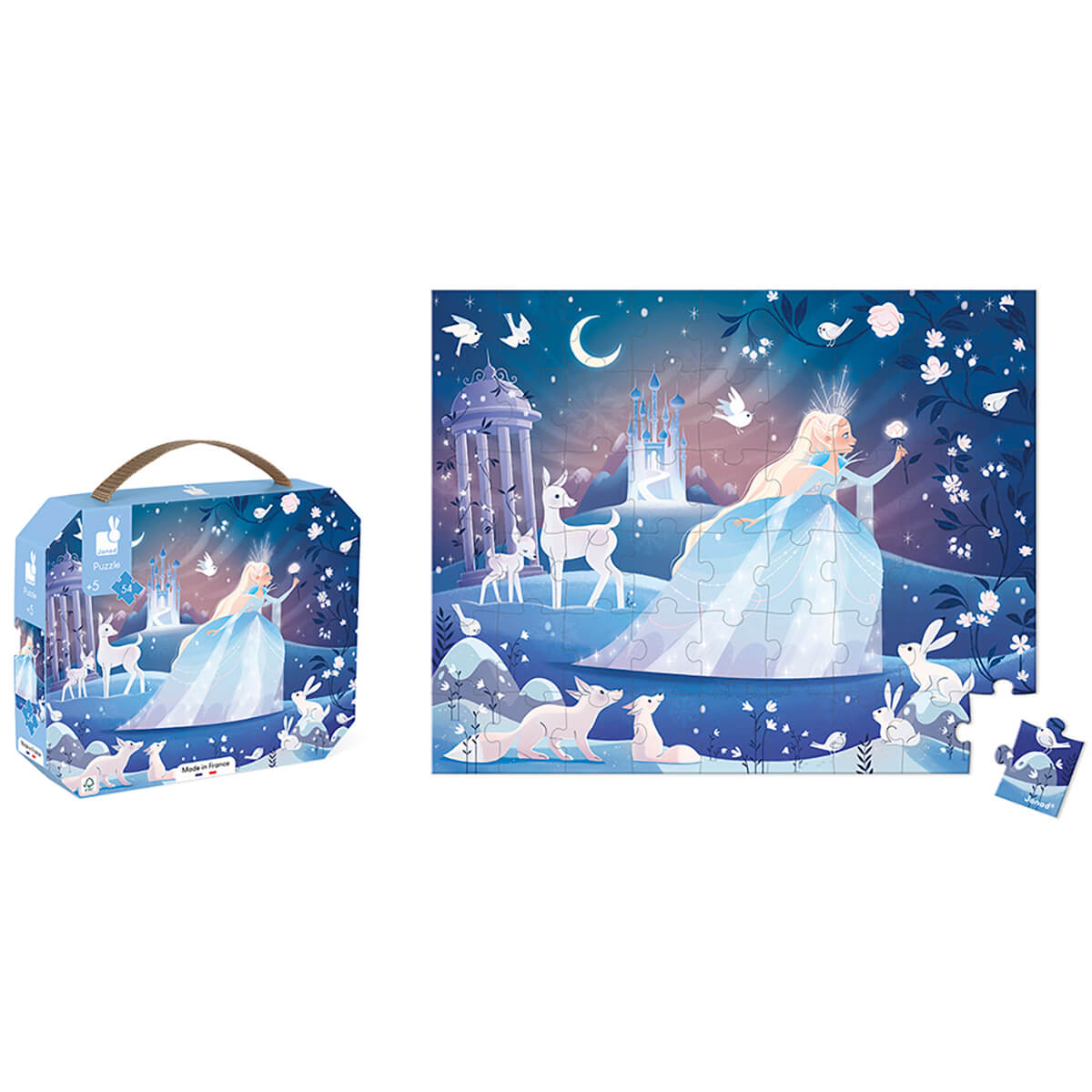 Ice Enchantment puzzle by Janod. Dive into the snowy world of the ice queen with this 54 piece puzzle in a carry case.