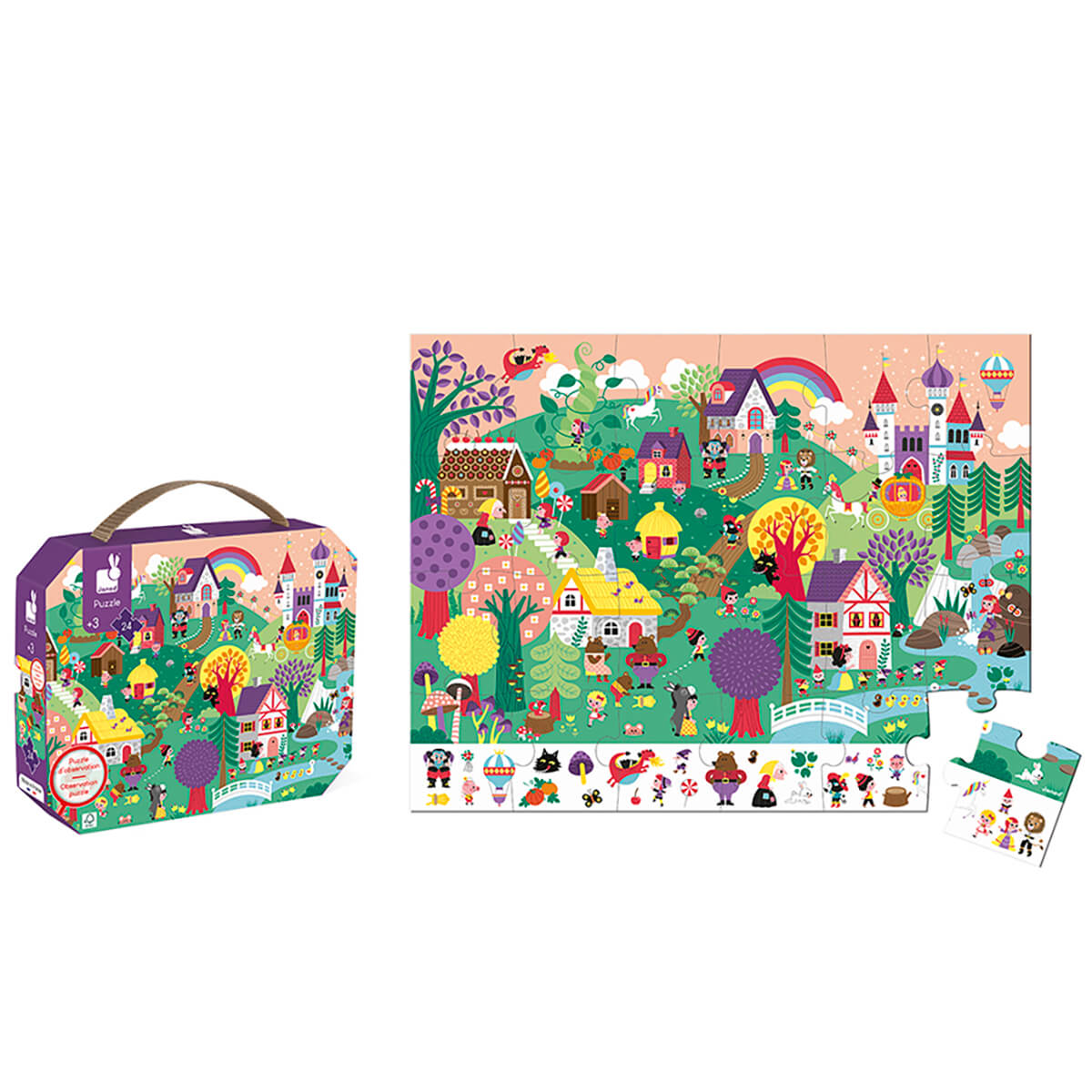 The Tales Observation Puzzle by Janod. Fairy tale inspired 24 piece puzzle in a handy carry case.