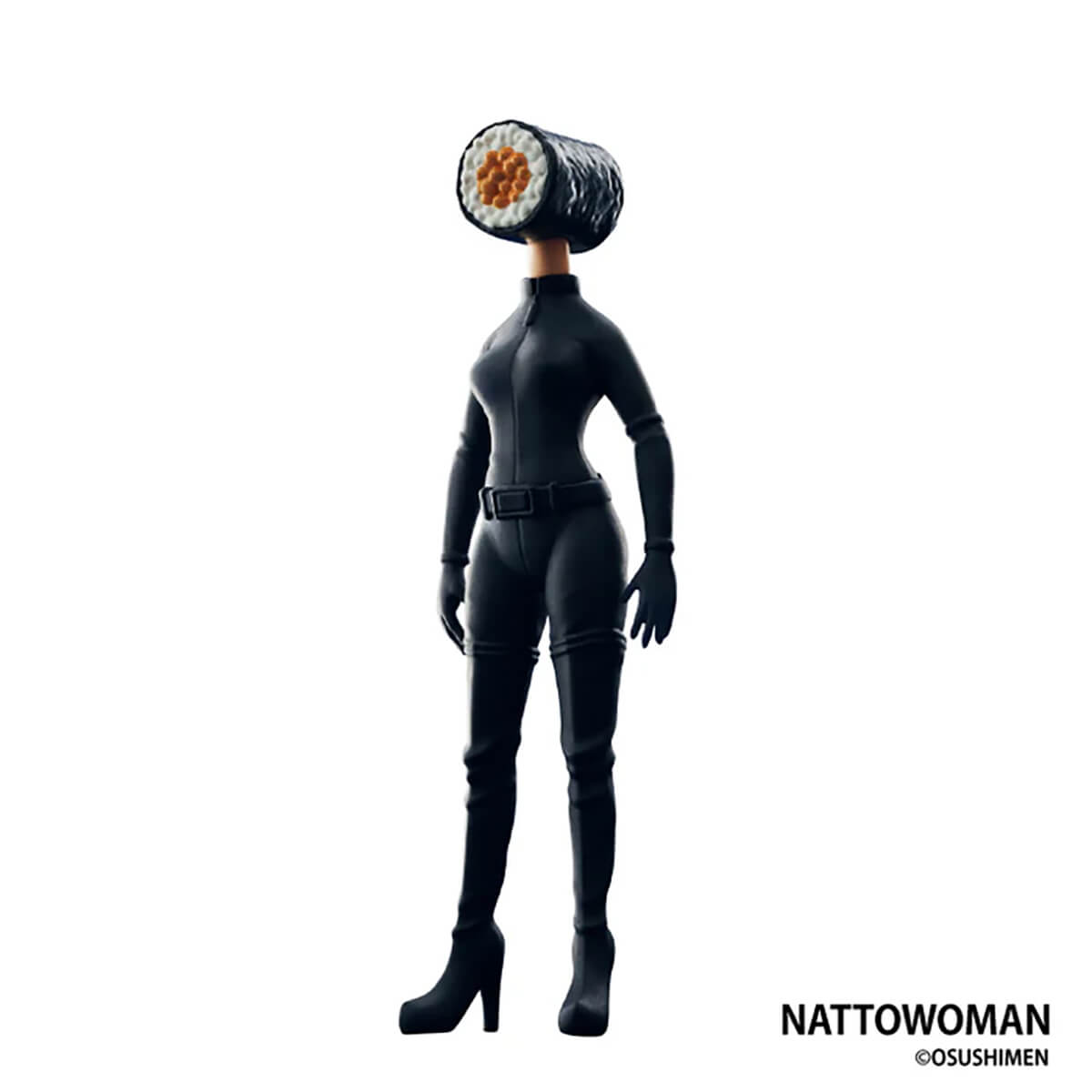 2. Nattowoman - makes a dashing appearance on her Natto Bike, and the kicks she unleashes from her slim body are artistically beautiful. Her special move is to hold her opponent in a bear hug and drip natto onto his face from above, causing an overwhelming foul stench and disgusting sensation that takes away the opponent's will to fight.