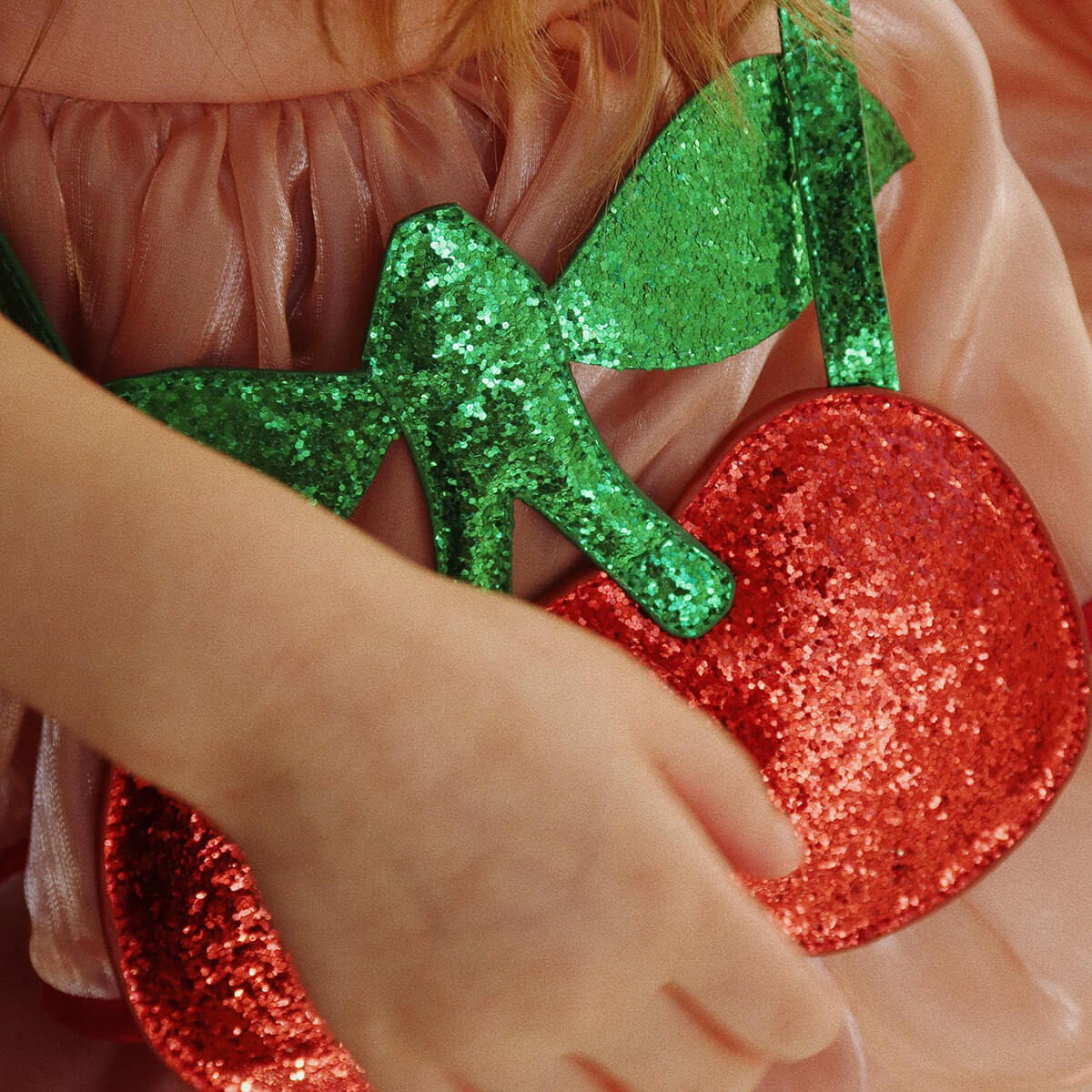 Cherry Wallet Bag by Konges Sløjd. The cherry on top of any little outfit. A sparkling shoulder bag with a slim shoulder strap and zipper closure.