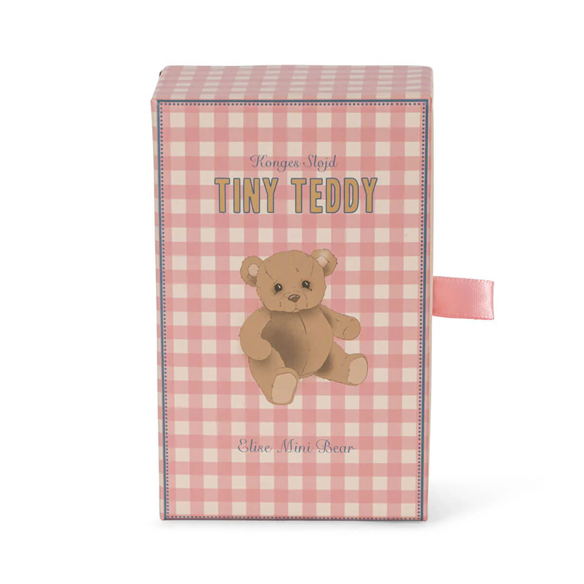 Elise Tiny Teddy by Konges Sløjd. Elise Tiny Teddy comes in a small box that can be transformed into a safe and comforting little bed, all you have to do is pull the tab to open the little drawer. Includes a little pillow and blanket for sweet dreams.