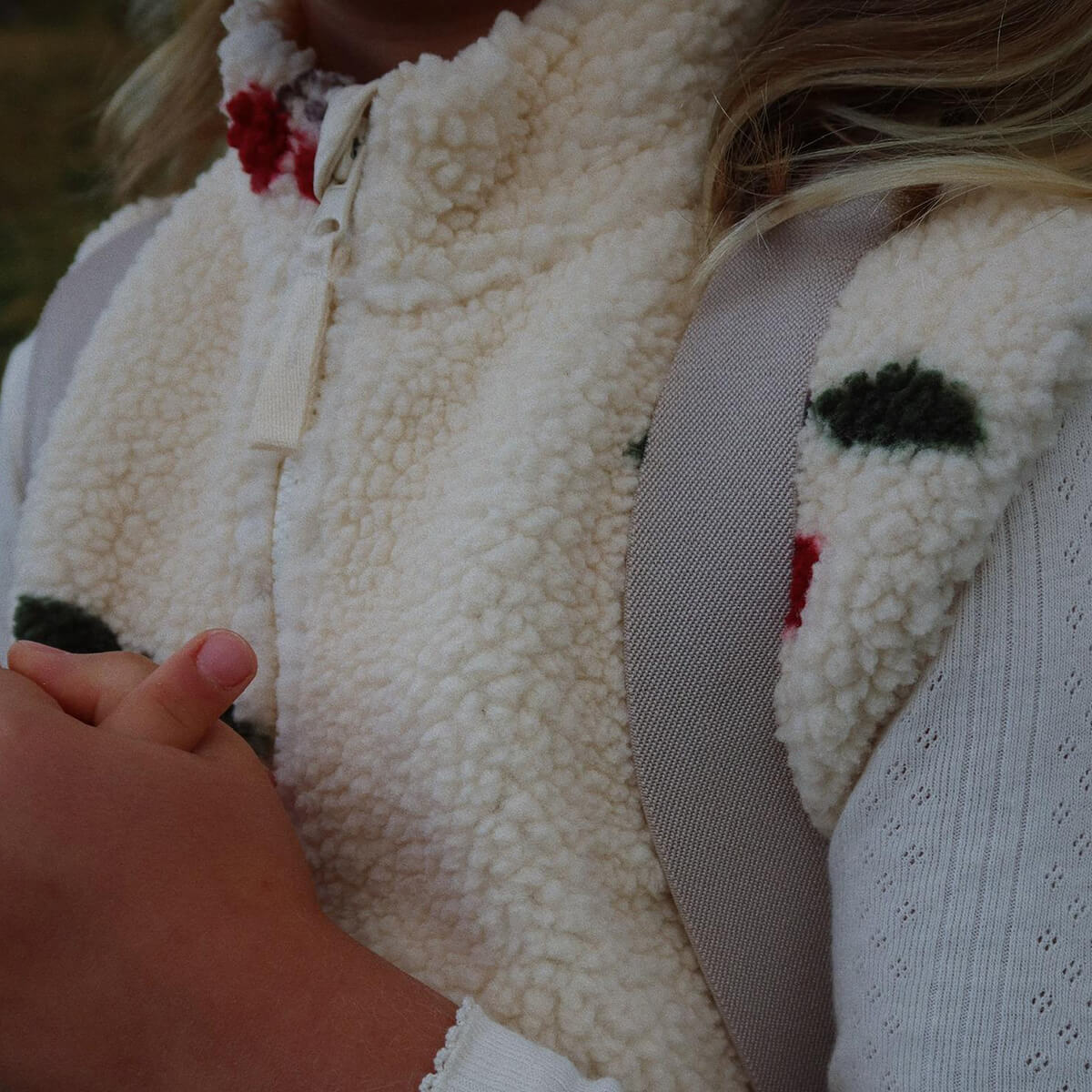 Jody Teddy Vest by Konges Sløjd. Warm teddy fleece vest with soft inside fleece lining. Features a high collar and elastic bottom hem for a comfortable fit.