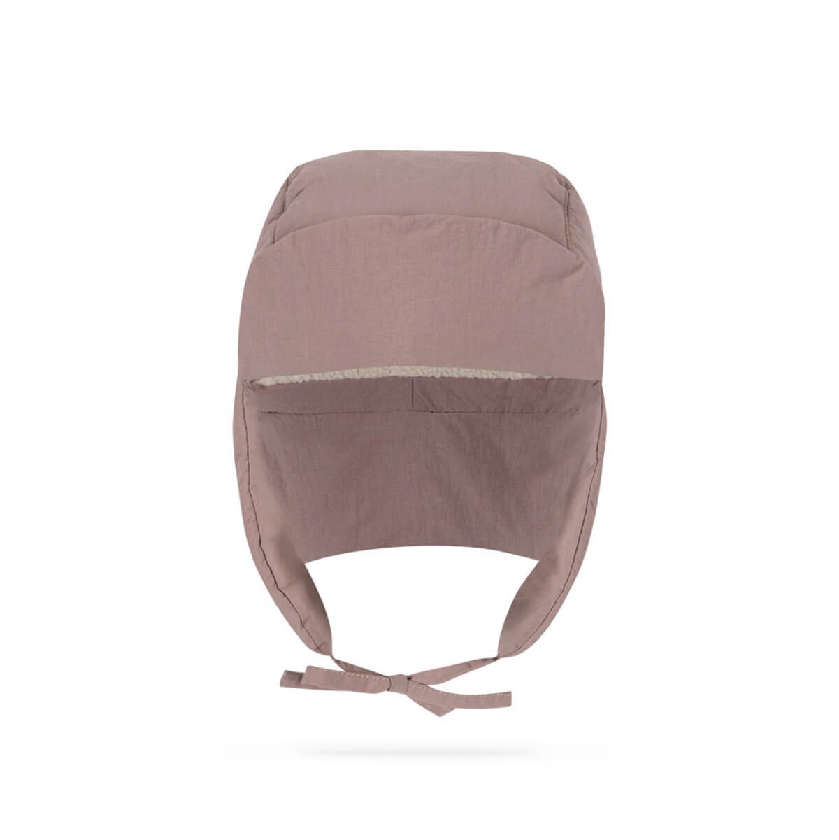 Juno Hat by Konges Sløjd. Soft, waterproof padded hat that ties under the chin. Designed with a comfy inside fleece lining.