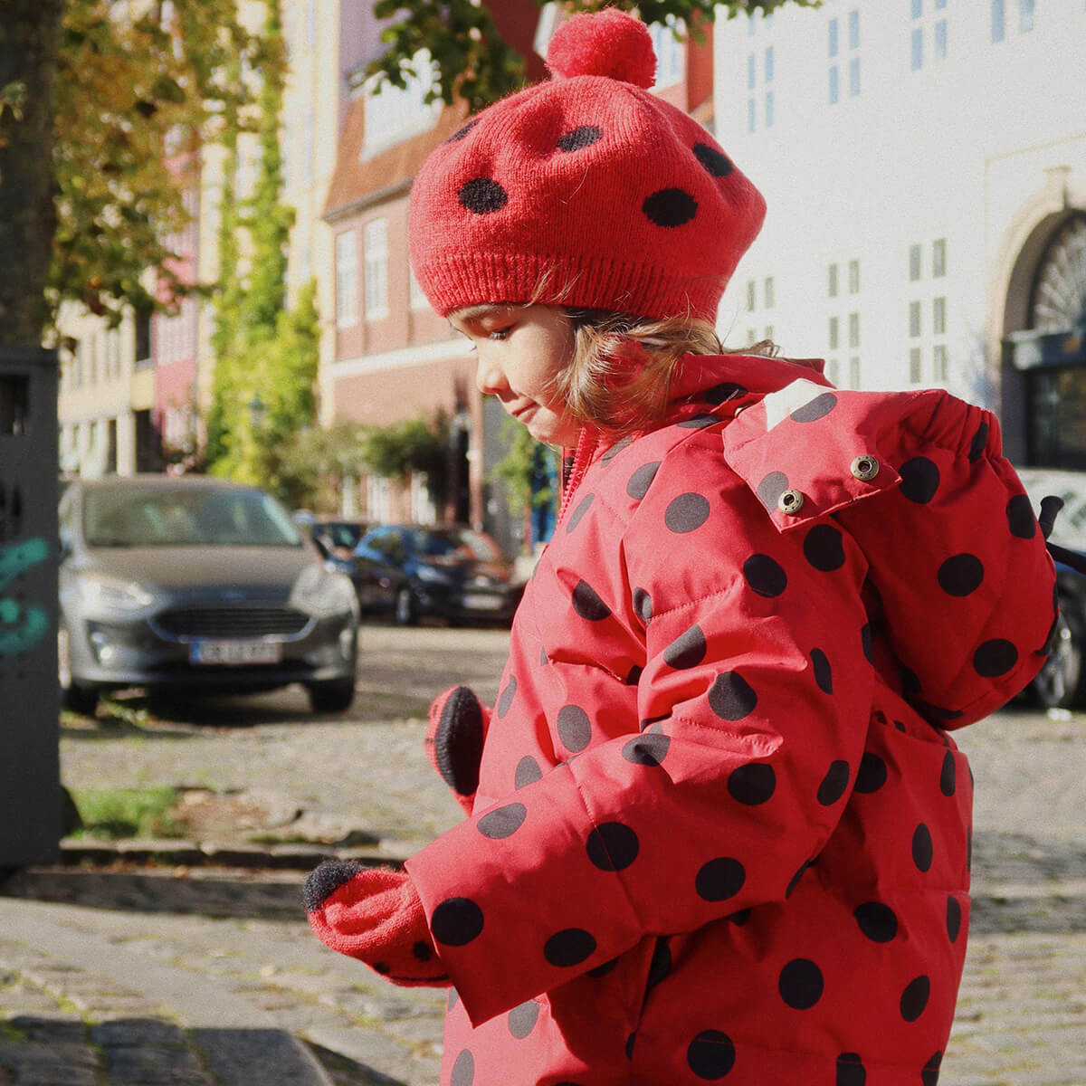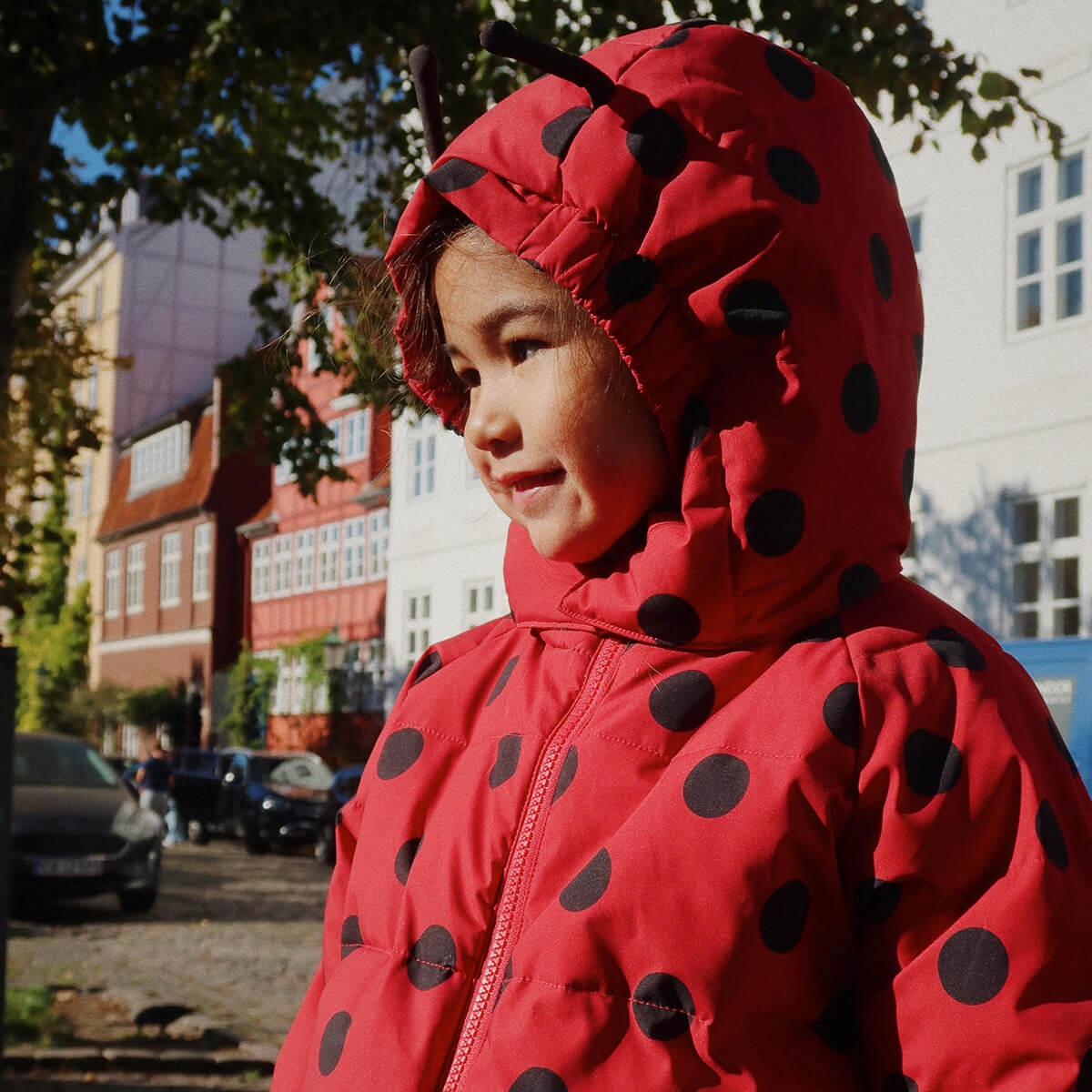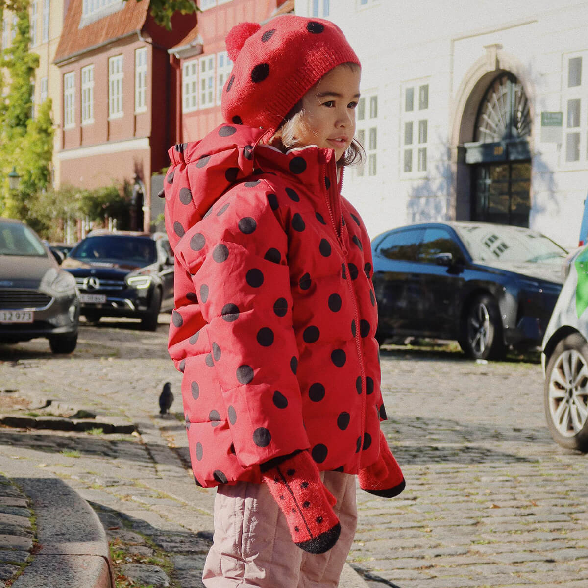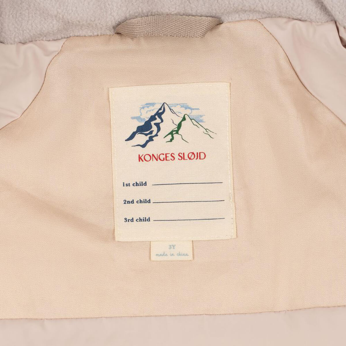 Nuka jacket by Konges Slojd. Warm puffer jacket designed for premium weather protection with water-repellent and wind-resistant features. Designed with a detachable hood, practical storm cuffs, and THERMOLITE® EcoMade padding: an insulating fiber that offers warmth without feeling heavy on the body.