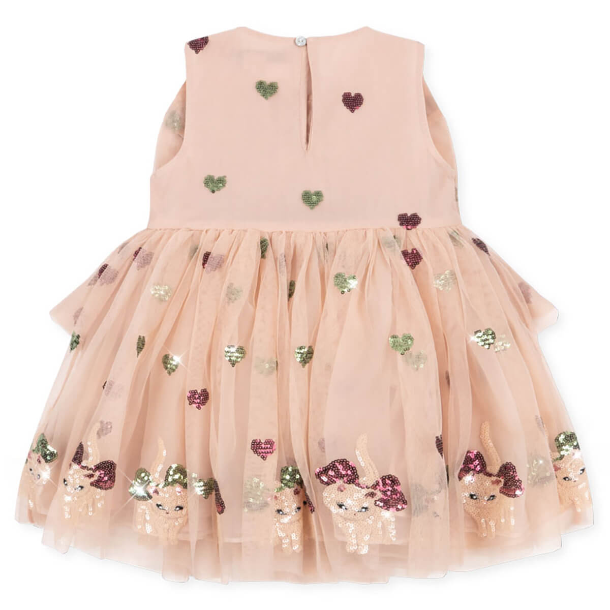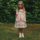 Yvonne Dress by Konges Sløjd. The Yvonne dress is the stuff of dreams: a voluminous tulle piece with shimmering sequin details and a large bow in the front as the perfect finishing touch. The dress is designed in a flowy silhouette with a skirt that swooshes and sways when you play and dance, and is adorned with decorative kitties. Lined with soft cotton for comfortable wear.