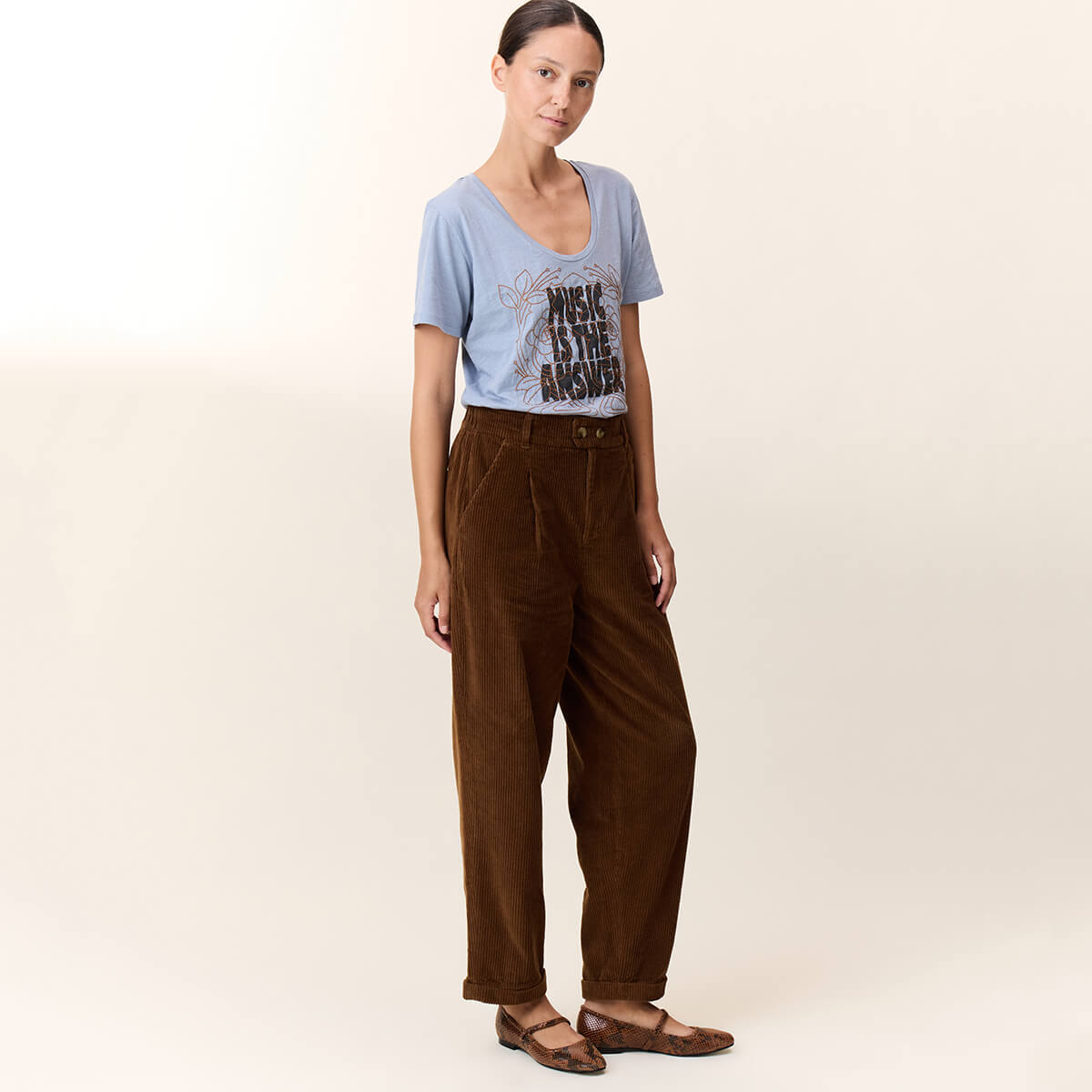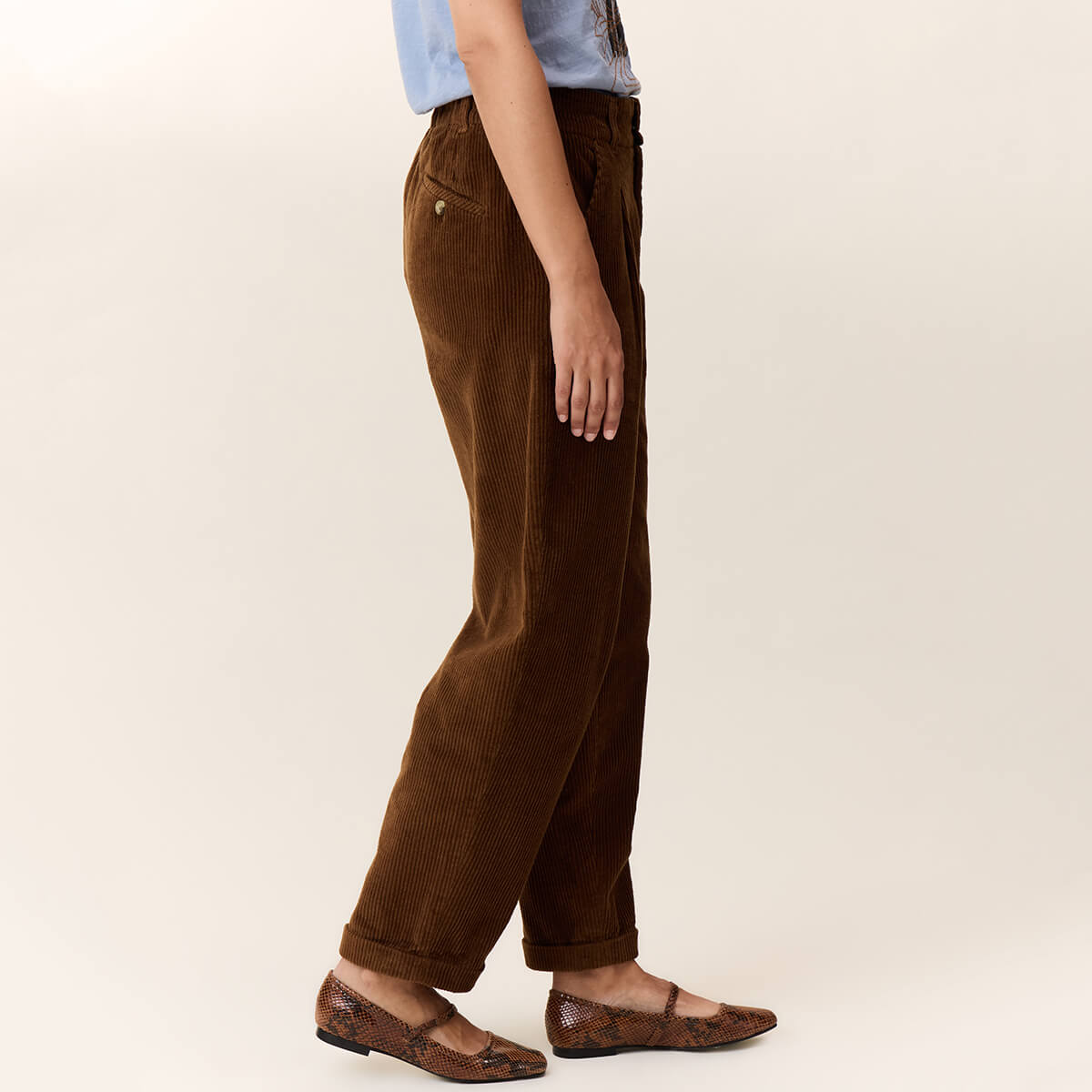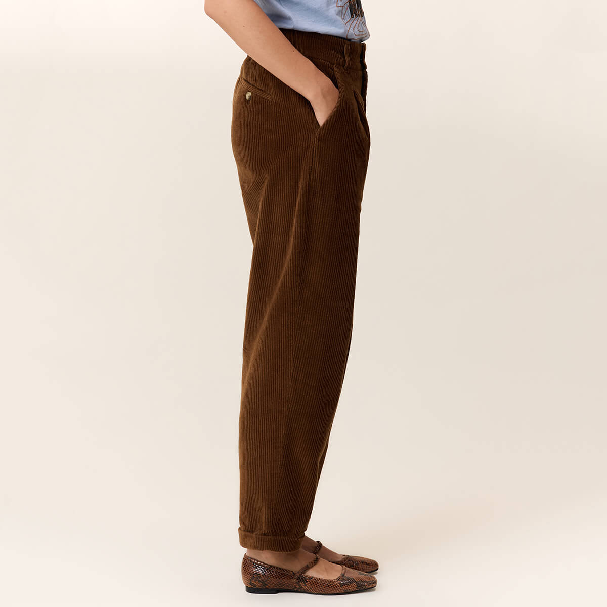 Prom Trousers by Leon & Harper. Pleat front corduroy pants with a double button waist finished with side pockets.