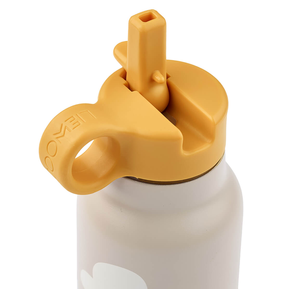 Falk water bottle by Liewood. Durable water bottle with flip up straw lid.  Keeps liquids cold for up to 12 hours or hot for up to 6 hours. Easy for litte hands to hold.