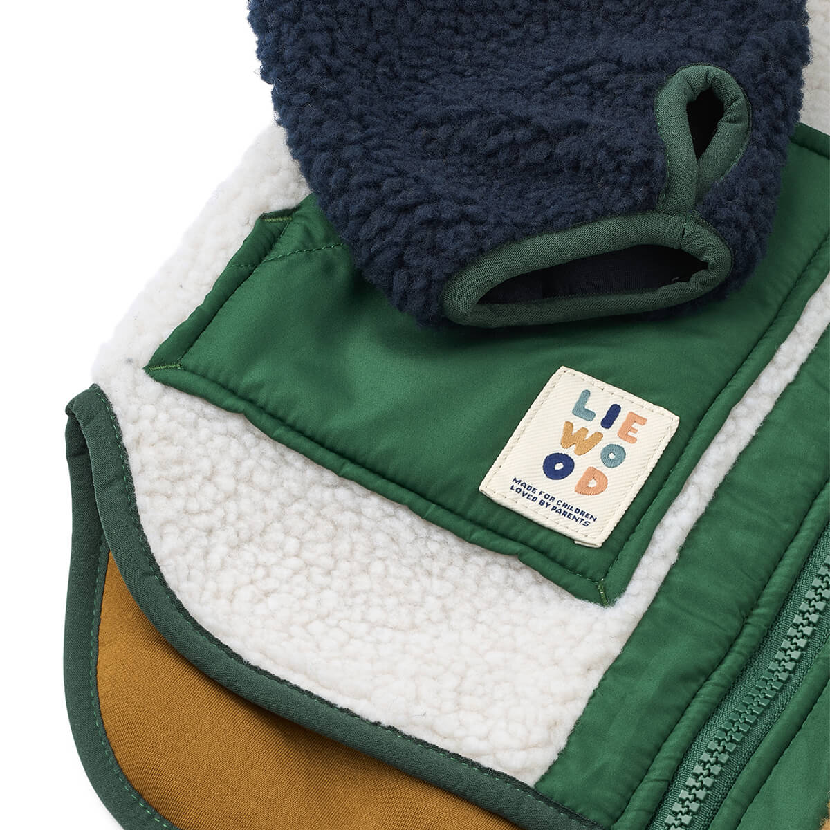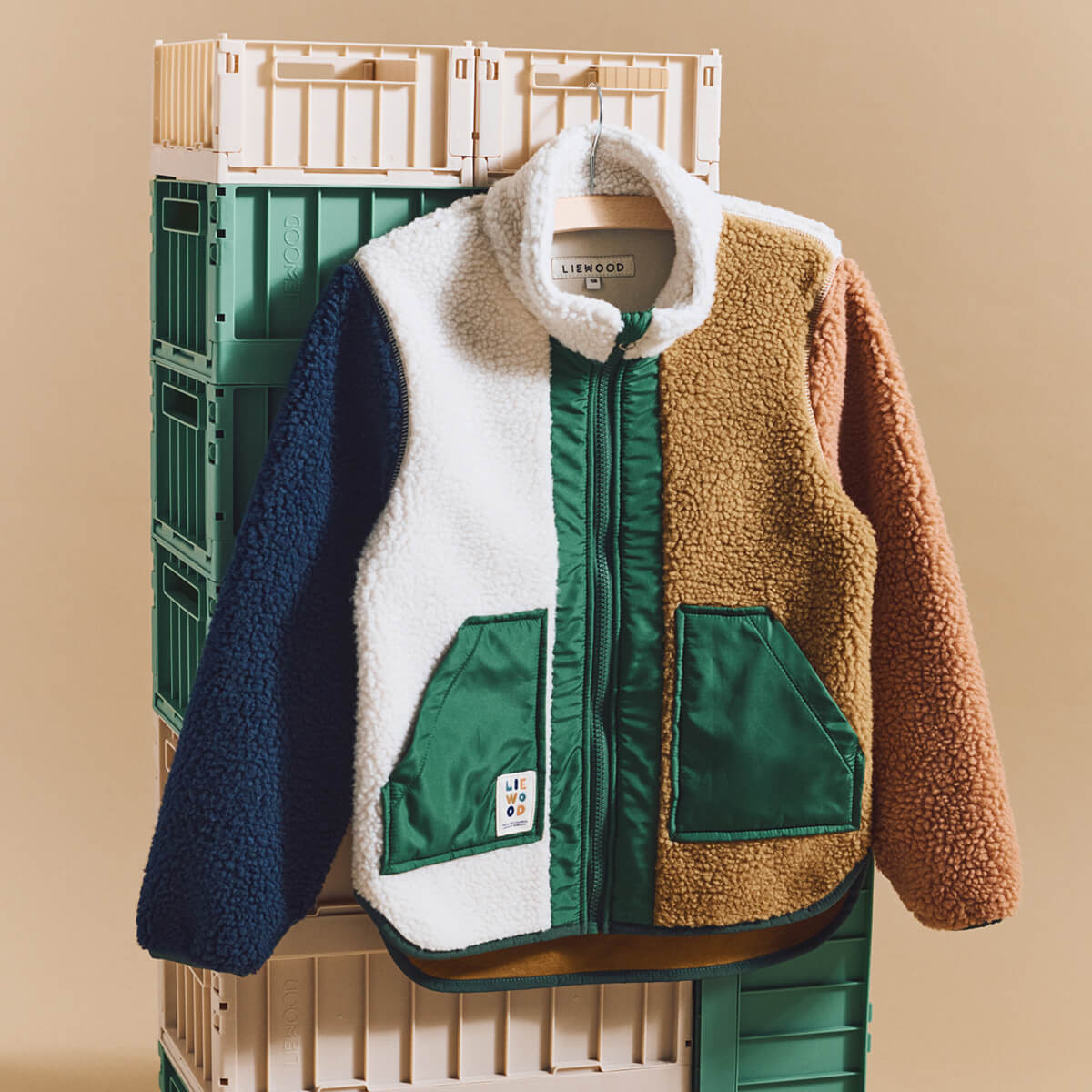 Noam Pile Jacket by Liewood. This cosy and practical jacket features a zipper closure, thumb holes and name tag. Can be worn on its own or as an extra warm layer.