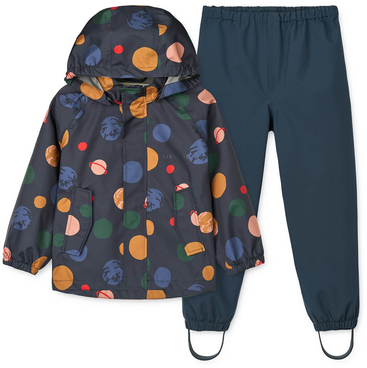 Pedia Rainwear Set by Liewood. This practical and playful rainwear set is both wind and waterproof and features reflective details.