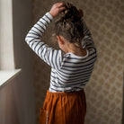 Striped Jersey Tee by Little Cotton Clothes. A lovely simple and comfortable everyday t-shirt. Made from the softest organic, pointelle jersey with a stripe which has been woven especially for Little Cotton Clothes. Sizes 2-3 to 4-5 years have a press-stud neck opening.