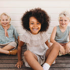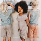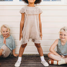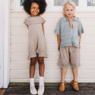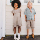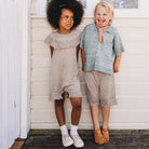 Liliwen Romper by Mabli. Lightweight linen romper with a statement collar and elasticated cuffs.