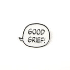 Good Grief Pin by Magpie. Black nickel plated brass pin with coloured enamel. Pin is approx 35mm high. Comes with backing card packaging.