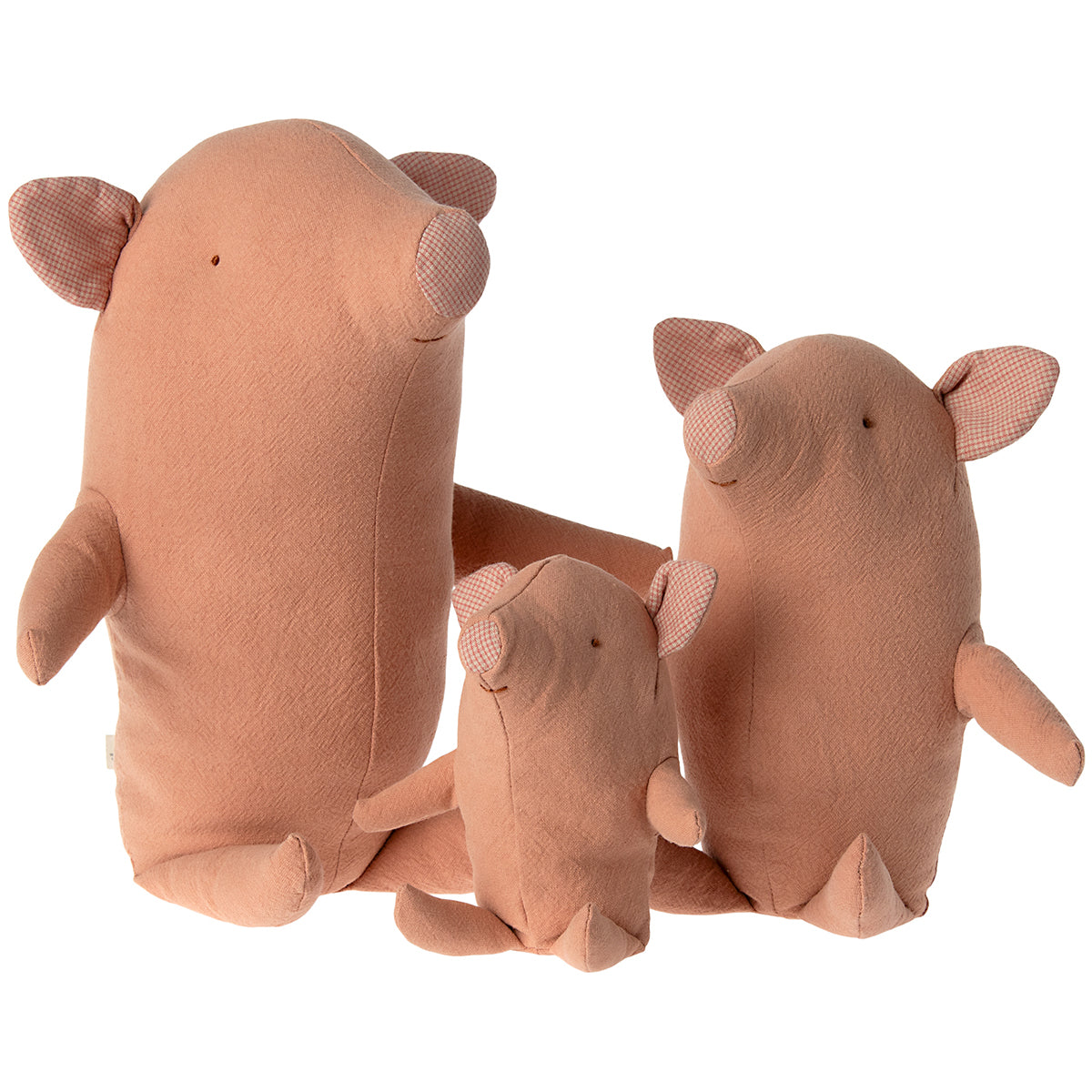 Truffle Pig by Maileg. A true Maileg classic item. Truffles is an adorably pudgy pig who can sit straight up because of the beans in its bottom. Truffles have short arms and a curly little tail. You can find this soft pig in three sizes.