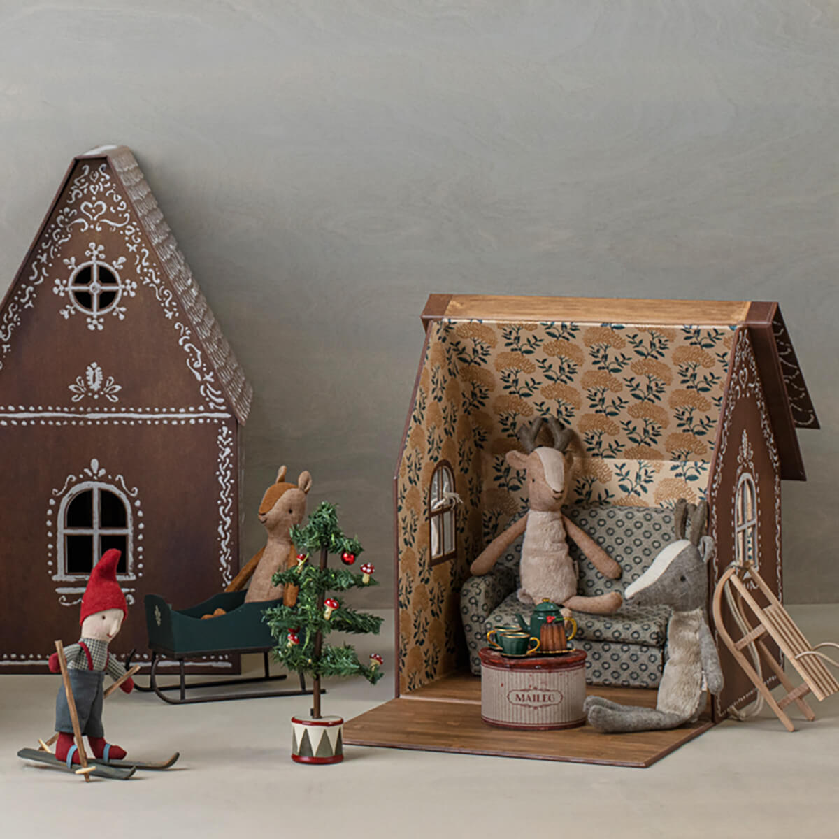 Little Sister Deer by Maileg. A sweet and adorable deer. She lives in the small Gingerbread house with the rest of the deer family.