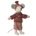 Winter Mouse with Ski Set by Maileg. A mouse ready for hours of fun on the slopes during the cold wintertime. Each playset contains a warmly dressed mouse with a pair of ski and poles. Look at the tiny knitted hat that will keep the ears warm.