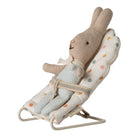 Babysitter baby mouse / bunny chair (Micro size) by Maileg. With this baby sitter it is easy to bring your little friends to sleep. The base is made of metal and covered by the most lovely dotted fabric. The chair fits the baby mice and micro sized rabbits and bunnies perfectly.