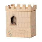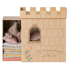 Princess and the pea mouse by Maileg.  Become enchanted with Maileg's take on the classic fairytale Princess and the Pea.  This mouse Princess, who wears a crown and dress, comes in a beautifully illustrated keepsake castle box that slides open and closed.  Open up the castle to reveal the princess's bed, including pillow, blanket and 7 padded fabric mattresses hiding a green crocheted pea.