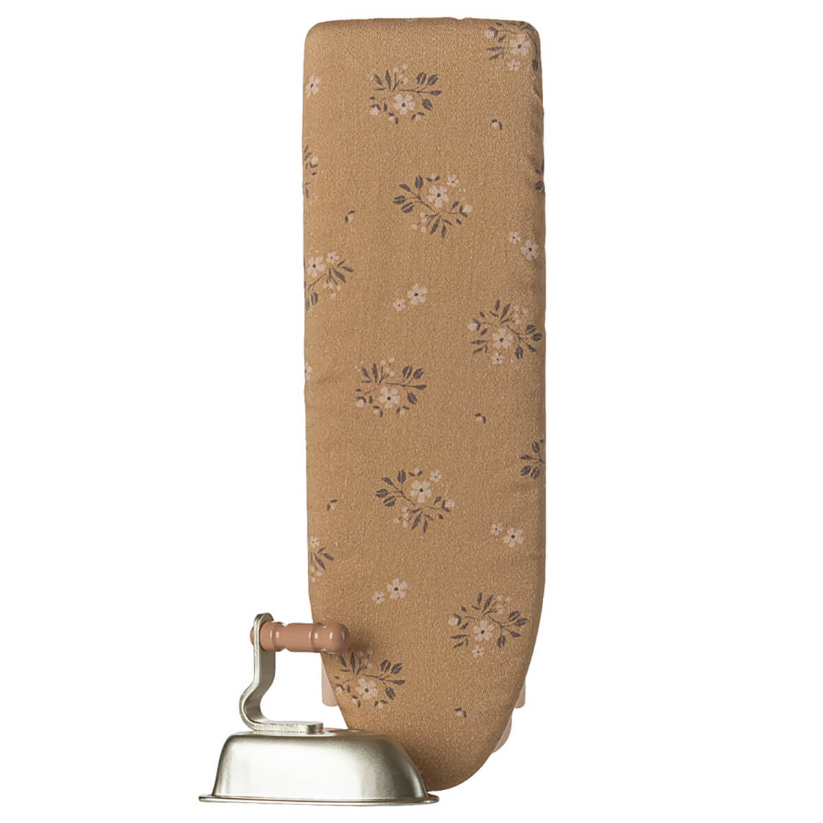 Iron and ironing board set in powder floral fabric by Maileg. To make the laundry room fully equipped, you must have an iron and iron board. This set will make the kids' play even more authentic. The iron board is made of metal and covered with unique Maileg fabric.