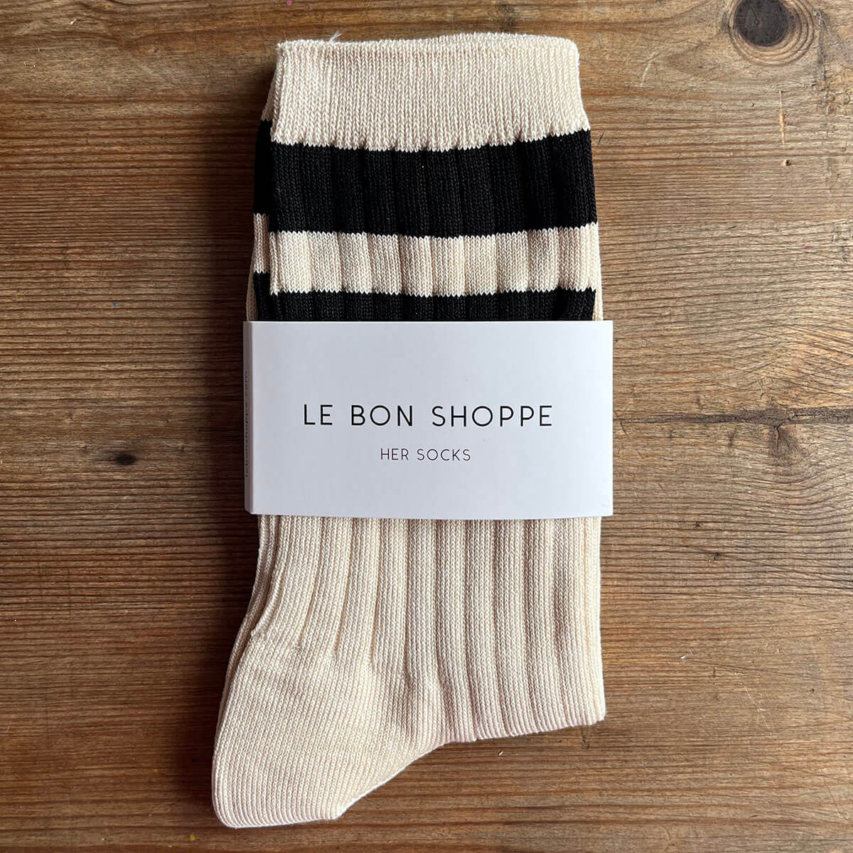 Her Varsity Adult Socks in Cream / Black by Le Bon Shoppe