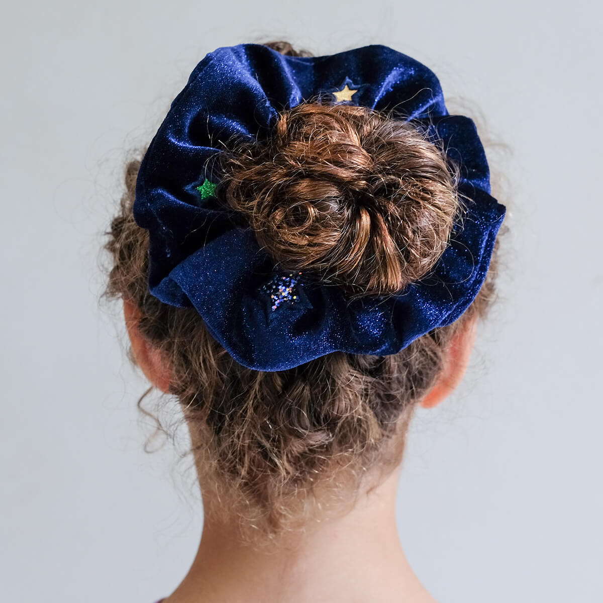 Constellation Velvet Hair scrunchie by Mimi & Lula. Step out in style with this luxurious velvet scrunchie! Scattered with a beautiful constellation of shimmering stars, this super soft scrunchie will add the finishing touch to any up 'do.