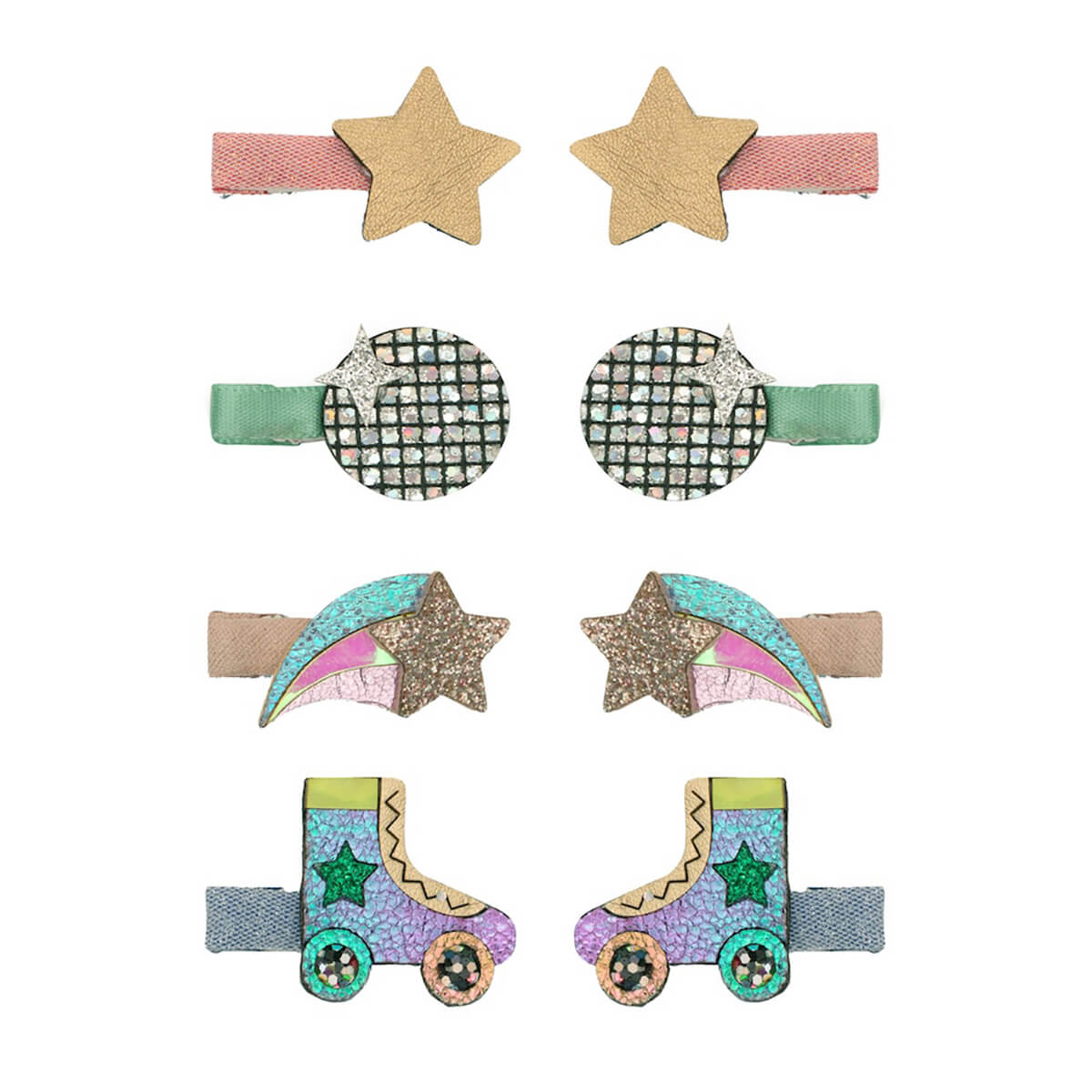 Disco Diva Hair Clips by Mimi & Lula. Dinky little disco fans will love to decorate their chosen 'do with this fab pack of mini clips! Disco balls, retro rollerboots, and sparkly stars - all the stuff the cool kids will go crazy for!
