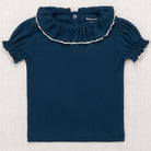 Balloon Sleeve Paloma Tee by Misha & Puff. A classic short-sleeved slim-fit top in Pima cotton, featuring a gathered ruffle neck and a soft elasticated ruffle cuff with contrast merrowed edges, and a snap closure at the back neck.