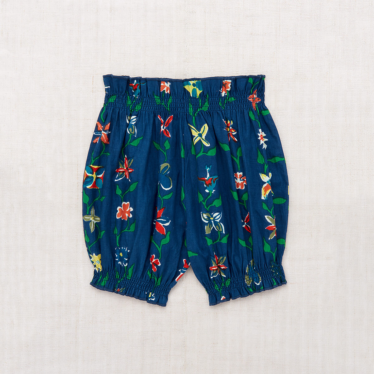 Bloomer by Misha & Puff. Pull-on bloomers in cotton poplin, with a cinched ruffle elastic waist and leg opening with a merrowed edge. Finished with French seams.
