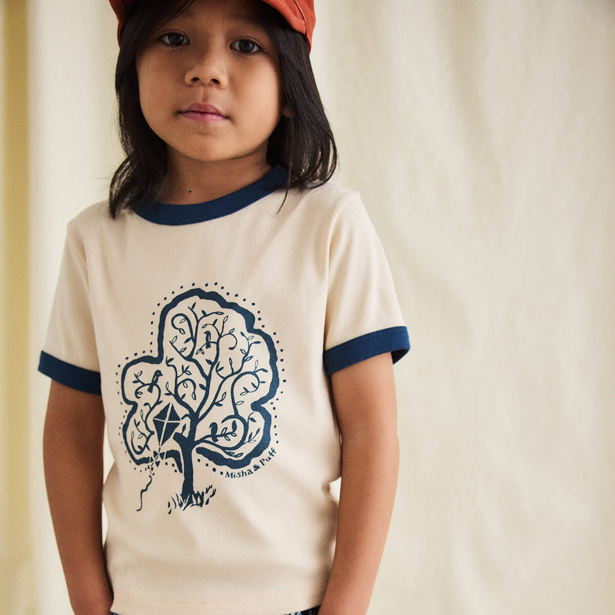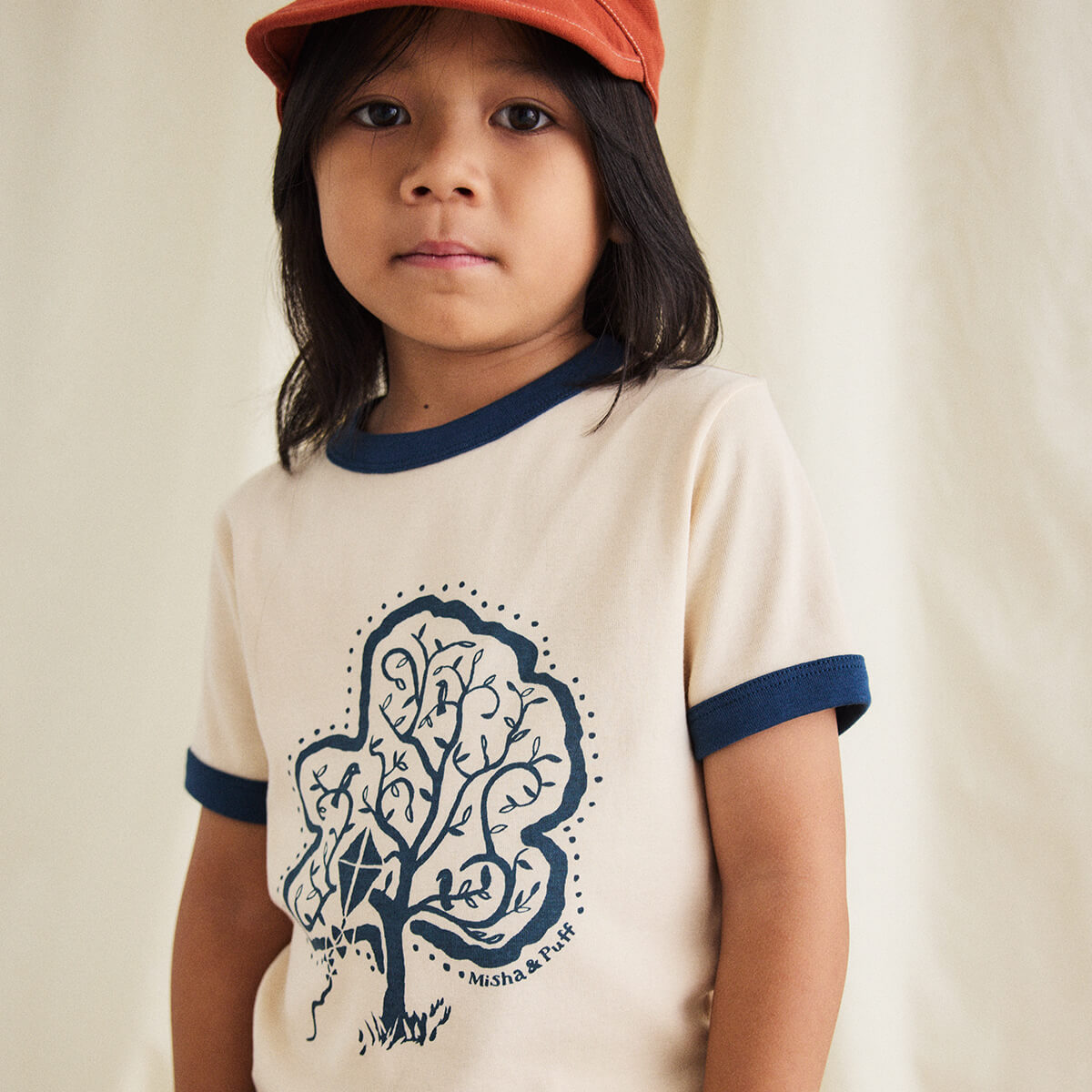 Esplanade Ringer Tee by Misha & Puff. A classic slim-fit graphic ringer tee in soft Pima cotton, with contrast neckline and sleeve trim.