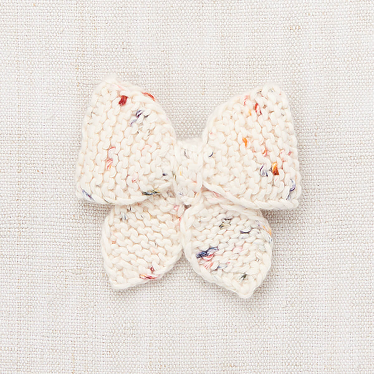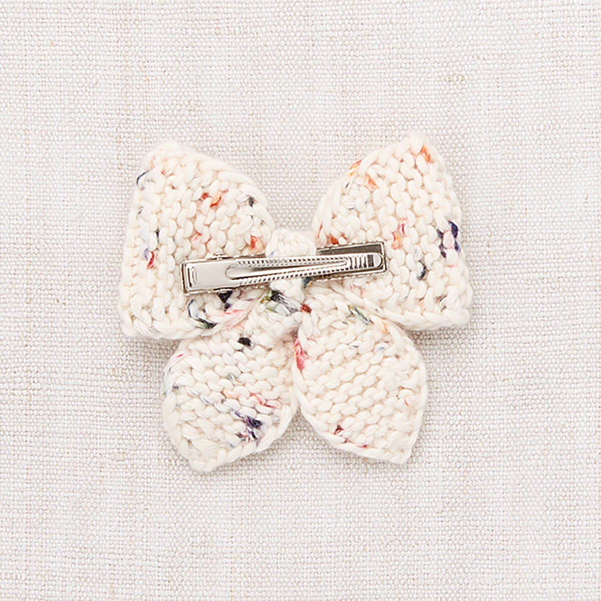 Medium Puff Bow by Misha & Puff. A hand-knit bow on an alligator clip in Pima cotton. For matching your favourite knitwear, adding a pop of color, or gifting to a friend.